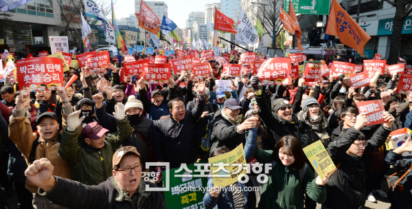 2016年,韩国媒体爆出朴槿惠闺蜜崔顺实的干政事件,其无任公职,却能过目总统的相关机密讲稿、文件,使得朴槿惠的支持率在瞬间降到个位数,为韩国史上总统支持率的新低,民怨一触即发。首尔、釜山各地皆有大规模示威游行,要求朴槿惠下台,韩国法院更罕见地核准青瓦台周边的集会申请。
