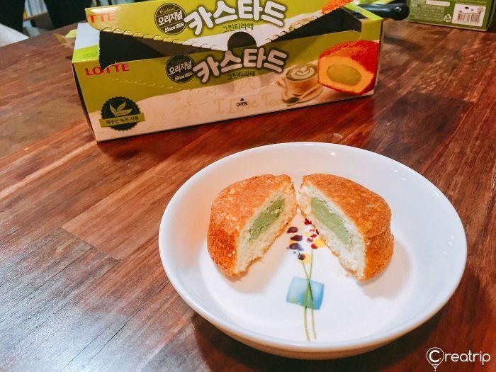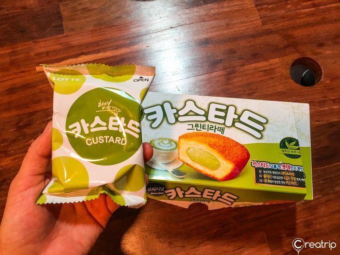 卢OO (韩国人, 工程师) : 跟原味的蛋黄派比起来,里面的卡士达酱稍微硬一点。抹茶味不太明显。