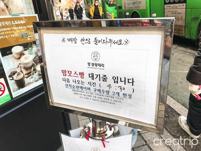 接下来是Jean Boulangerie里面一定要排队才买得到的长毛象面包(맘모스빵)!长毛象是韩国7、80年代在吃的传统面包,在大大的波萝面包里面加入生奶油、绿豆内馅、玉米、草莓酱等食材,到现在还广受很多人的喜爱。只是这个面包会在指定时间出炉,所以想吃的话一定要排队等待才行。(每天 16:30)