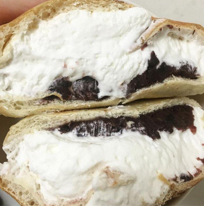 在Jean Boulangerie面包店里人气仅次长毛象面包的就是红豆面包(단팥빵) 了,我个人不太喜欢红豆面包,所以主要买回来给公公婆婆们吃,他们说甜甜的很美味喔!这里的红豆面包又被称为「生奶油红豆面包」,因为这里面还有著非常大量的生奶油!