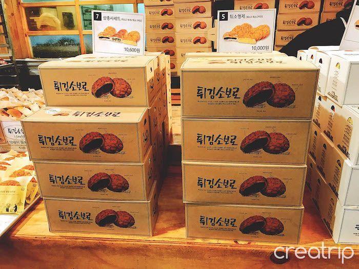 人气超旺的炸波萝面包甚至一箱一箱装著卖!(也可以单买!) 튀김소보로