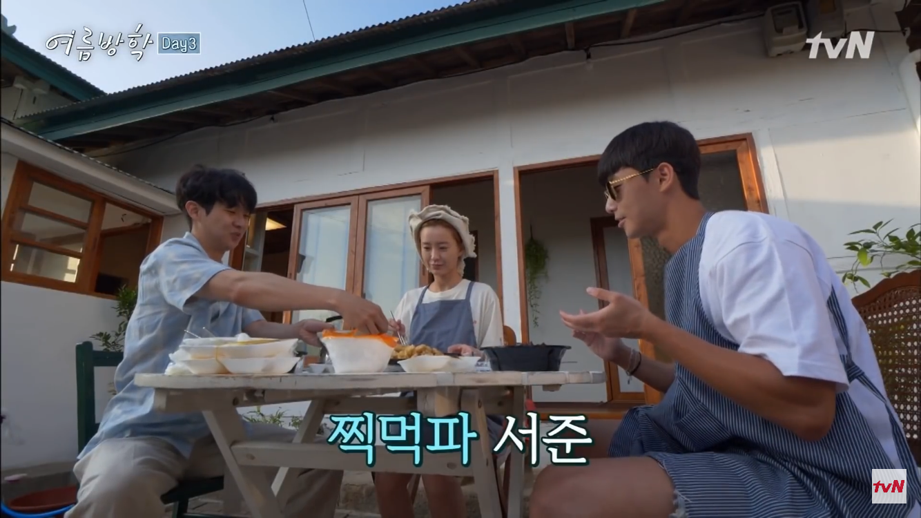 在31日播出的tvN综艺节目《暑假》中,郑有美、崔宇植、朴叙俊延续上周一起度过了愉快的时间,在戏水后,崔宇植订购了中华食物外送,与郑有美一起在院子中摆放桌椅,连蚊香都不忘照顾到。