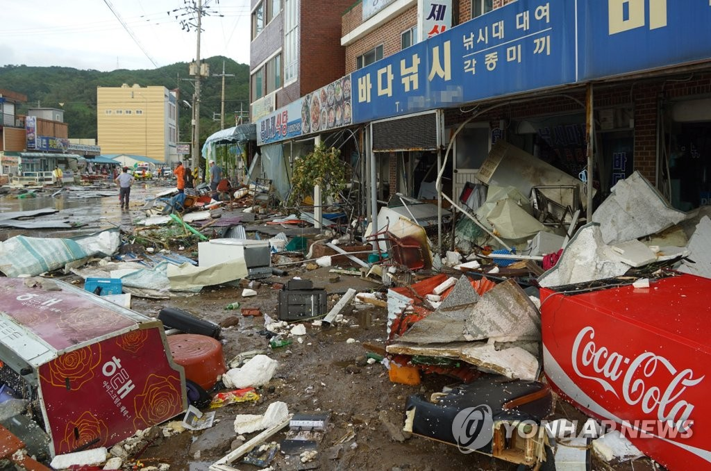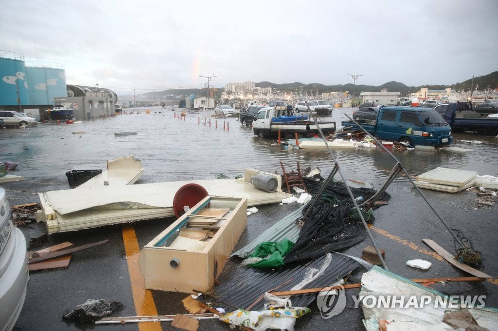 以下是梅莎台风对韩国南部地区、济州岛造成的影响。