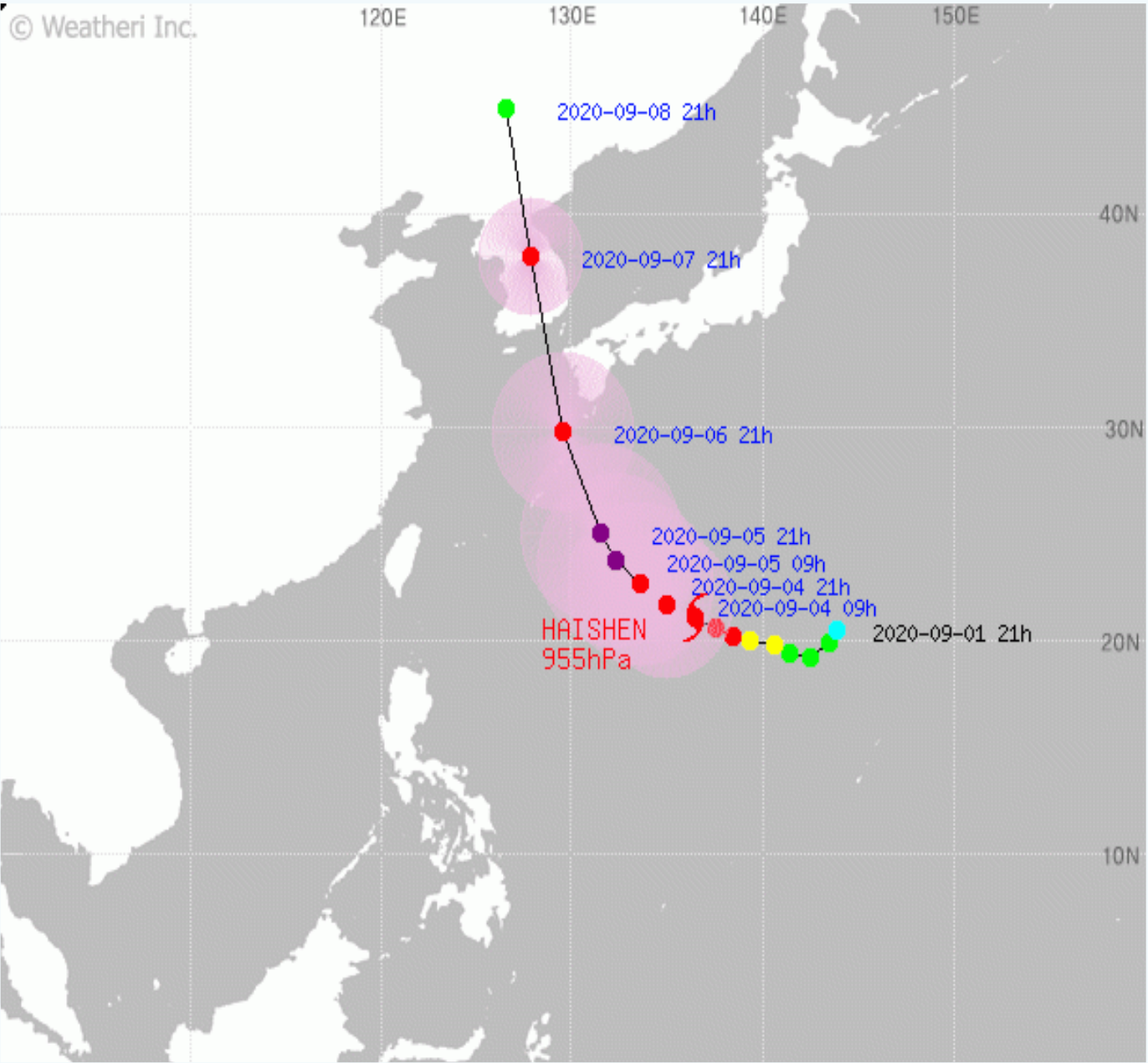 无独有偶,追在台风梅莎之后的是今年第10号台风海神,目前已是中度台风等级,威力也持续增强,根据各国路径研判,将会直直往朝鲜半岛扑去,日本九州、南韩地区预料将受到严重冲击,更有可能成为2020年以来最强的台风。