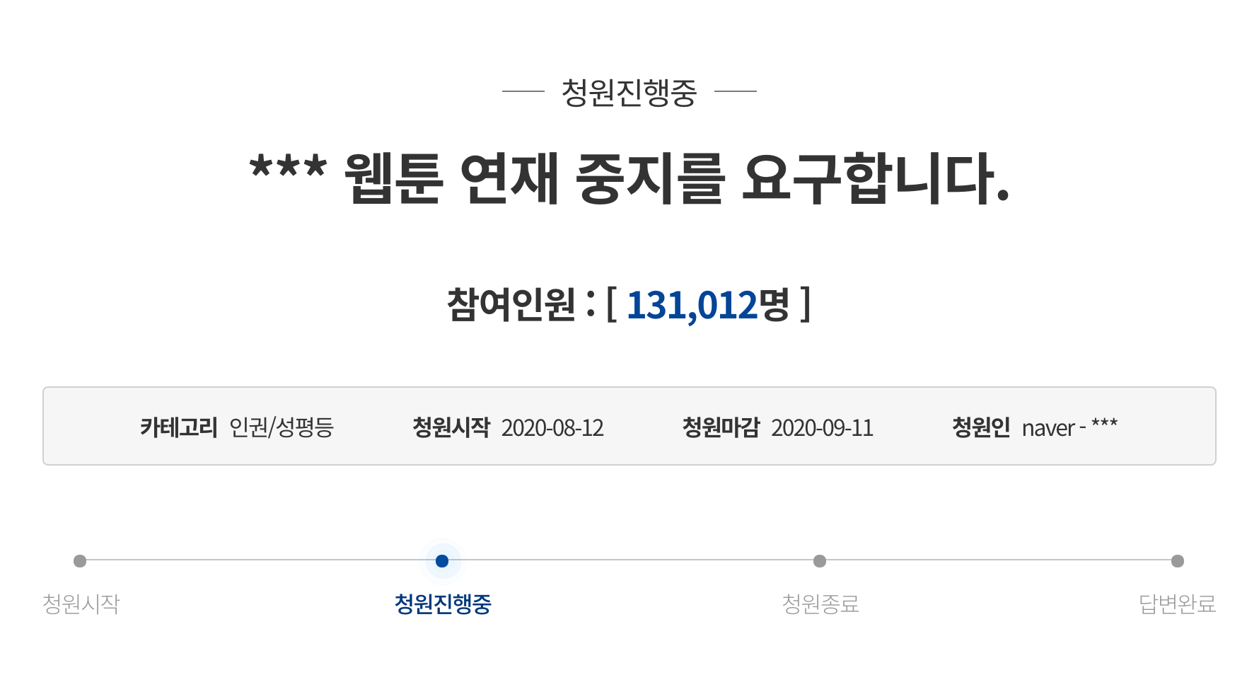青瓦台也出现相关请愿,要求中止《复学王》的连载,至今已超过13万人请愿。