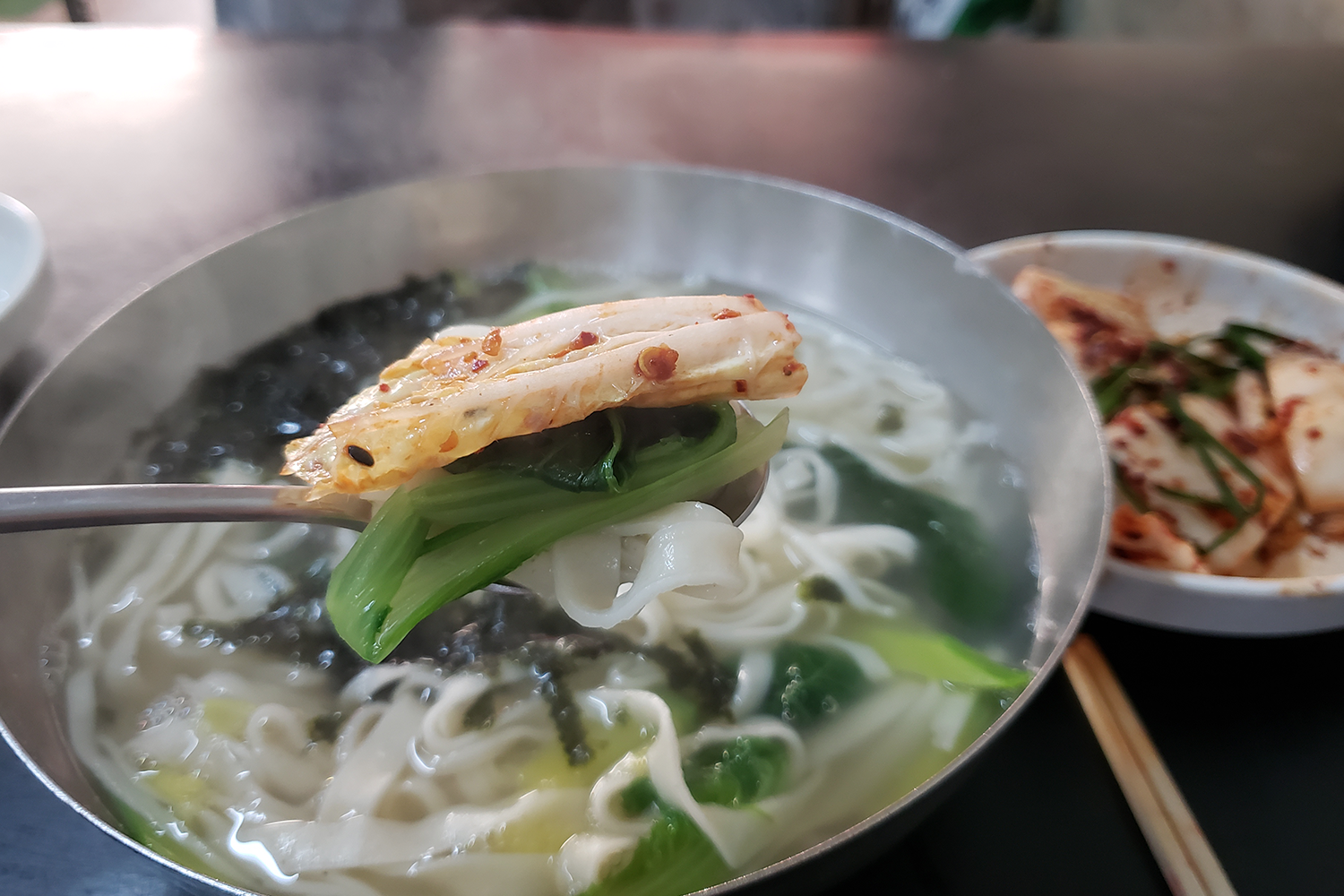 而且比起一般的韩国美食,这类清淡、朴实无华的刀削面,更考验着店家的功力。