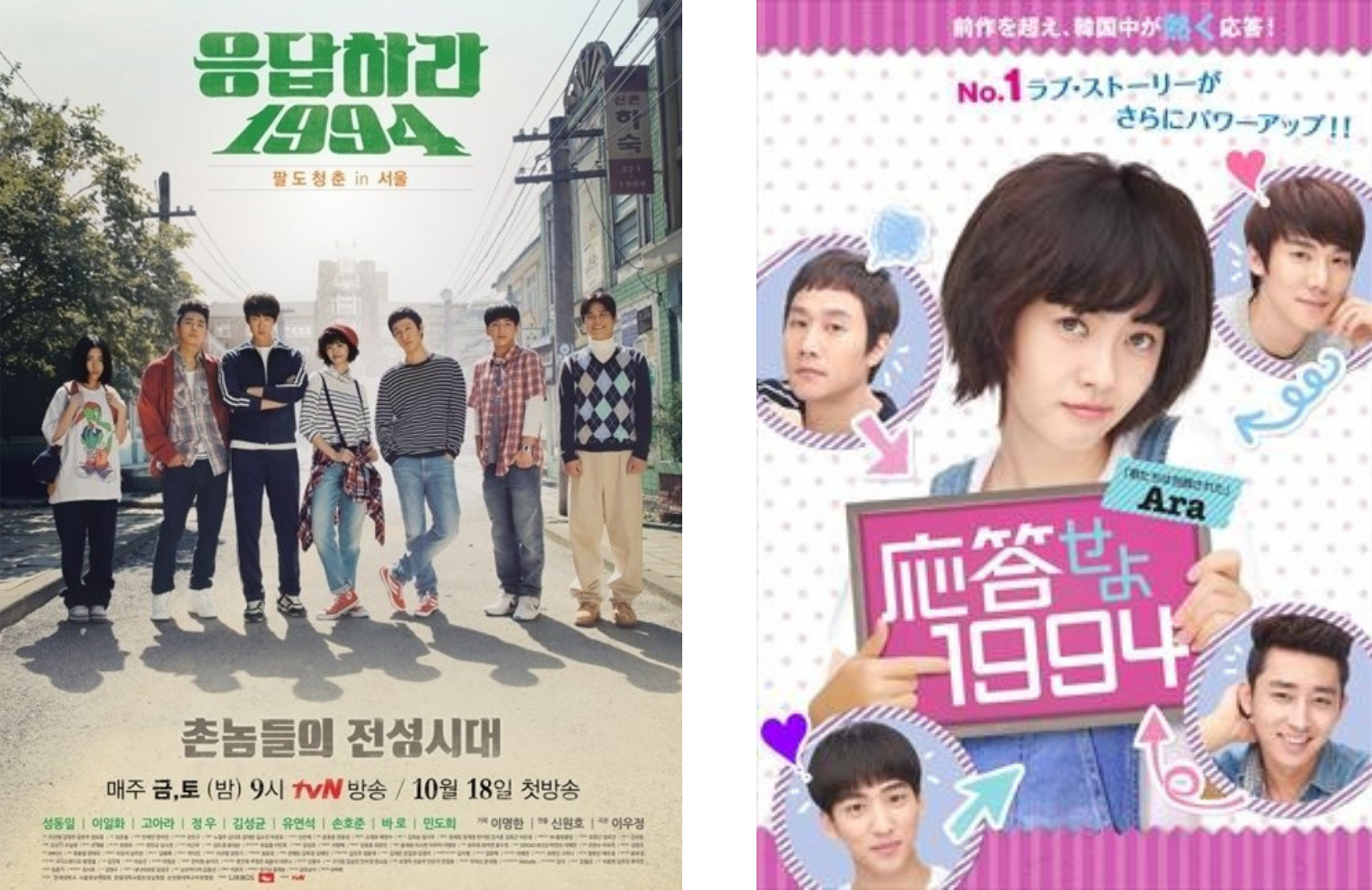 最有名的《请回答1988》中,韩国版的海报给人一种街头巷尾的热闹、亲密感,但在日本版的海报里,却以朴宝剑、柳俊烈、惠利三人为主,并以「爱的描绘」作为副标题,看起来就像描述著青春爱情为主的韩剧呢。