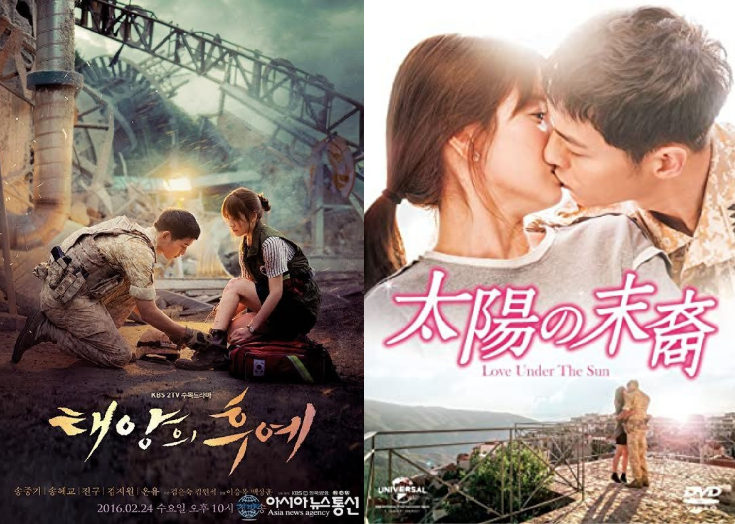 经典的《太阳的后裔》描述战争地区的爱情故事,比起韩国原版海报,日本更强调两人的接吻场景。小编看到这里,不禁觉得日本的海报似乎都在强调爱情故事的导向呢?