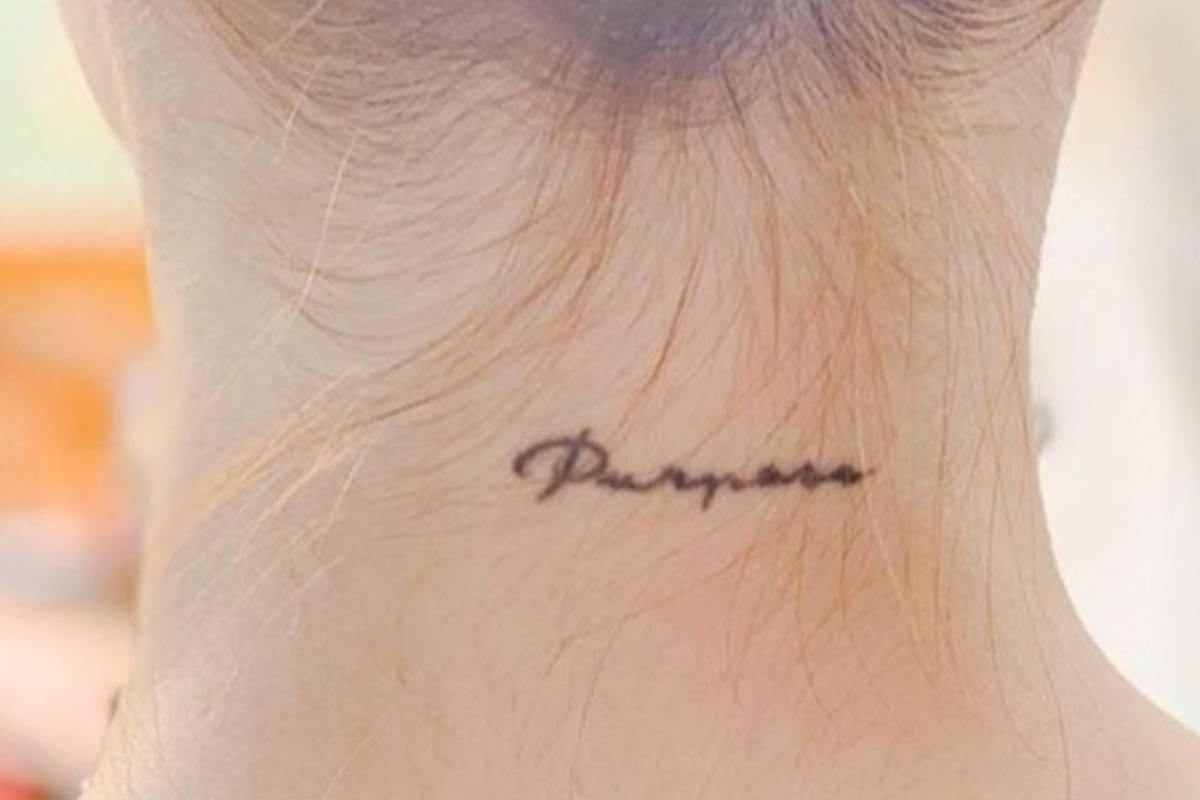 另外,太妍所有刺青中,令人印象最深的就是脖子后方的「purpose」。purpose的意义是「不想毫无意义的生活」可以感受到太妍对于生活的价值观。