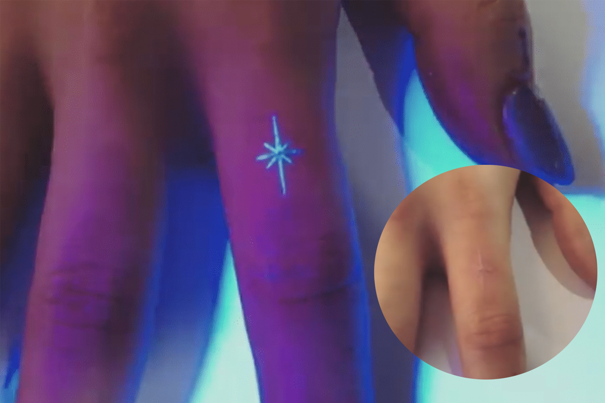 太妍的刺青都是属于小巧可爱的风格,有图案也有文字,非常适合女孩。而她食指上的夜光刺青是非常具有代表性的刺青,平时是几乎看不见的微凸印记,在黑暗中却是闪亮的星星,在派对时完全能成为全场焦点。