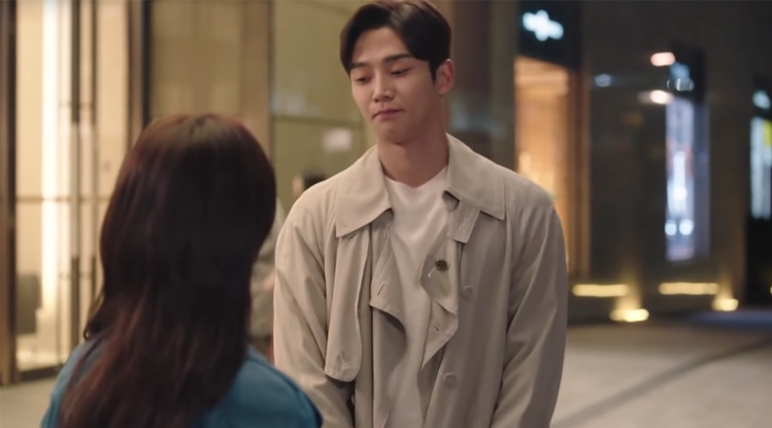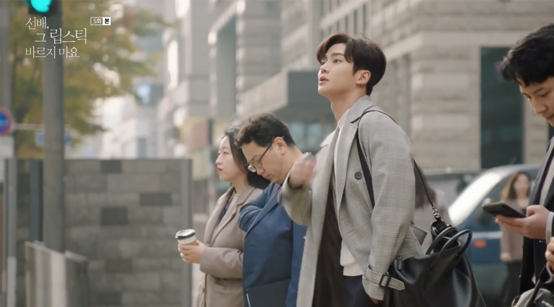这样看起来,《前辈,那支口红不要涂》其实有非常多景点都是在首尔拍摄,其中这个让小编非常印象深刻的场面,就是承贤在过马路前,看见已经独自走过、去上班的前辈,随后也追了上去,吓了对方一跳。
