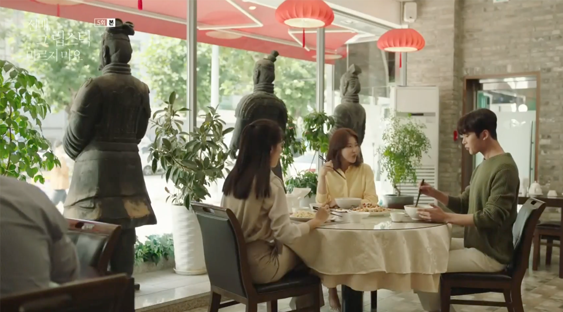 又是我们蔡家三姊弟运动完、吃饭的场面啦。这个餐厅是位于麻浦区的中华料理「花水木」,光看承贤津津有味地吃著炸酱面的样子,小编也好想跟著来一碗,试试看是什么味道呢。