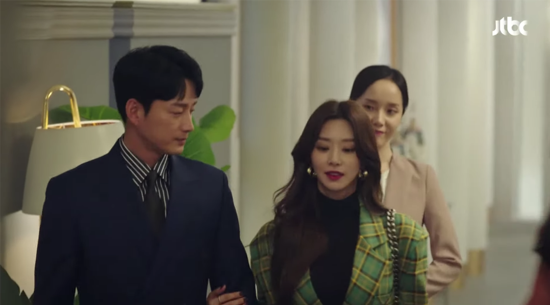 在《前辈,那支口红不要涂》开播没多久就出现的狗血戏码,真的让人印象深刻。蔡承贤在姊姊开的婚纱店,撞见前辈的交往对象李在信,带著其他女人来逛婚纱。而颂雅后来也发现了这件事,心中百感交集的样子真的让人看了好心疼。