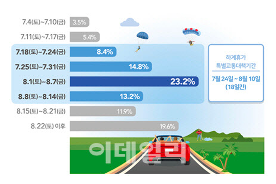 根据韩国观光公社之前的调查显示,前几年韩国上班族暑休有约85.5%是集中在特定一个月内,也就是说,约有85%的上班族在这时集体放假,连带的就是造成全韩国高速公路大塞车。
