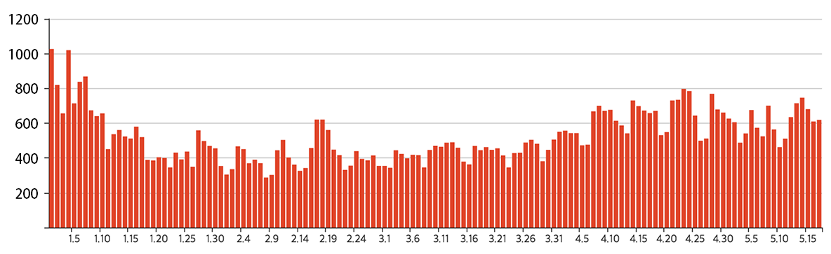 2020年四月底,韩国碰上佛诞日假期,新冠感染持续压在每日10例以下,04月30日、05月06日更宣布本土+0,疫情看似缓解,韩国政府立刻宣布于05月06日起放宽社交限制。