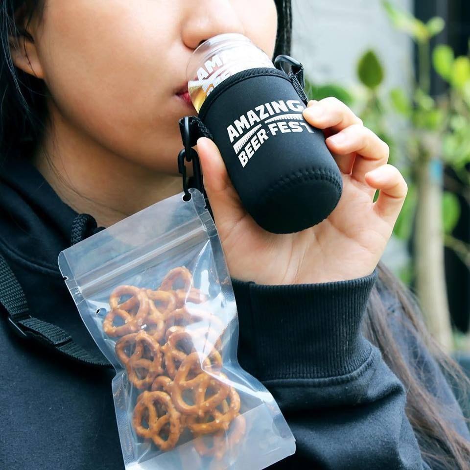 门票也包含酒杯的提袋,现场是禁止带外食进入的!所以场内也会贩售多样的下酒菜给大家一起搭配。也由于入场卷是一整天都能使用的,应该是可以去外面逛逛吃吃再入场喝啤酒的。