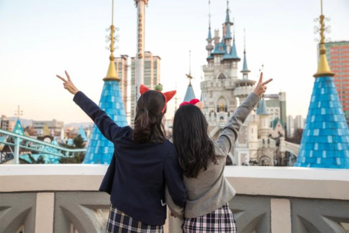 有时想短暂回到青春期时光,那么就穿上校服到游乐园拍张照吧,而且穿著校服到乐天世界还可以打折,所以有许多20、30代的人即使脱离学生时光已久,也还是会和朋友、另一半穿著校服到游乐园玩。