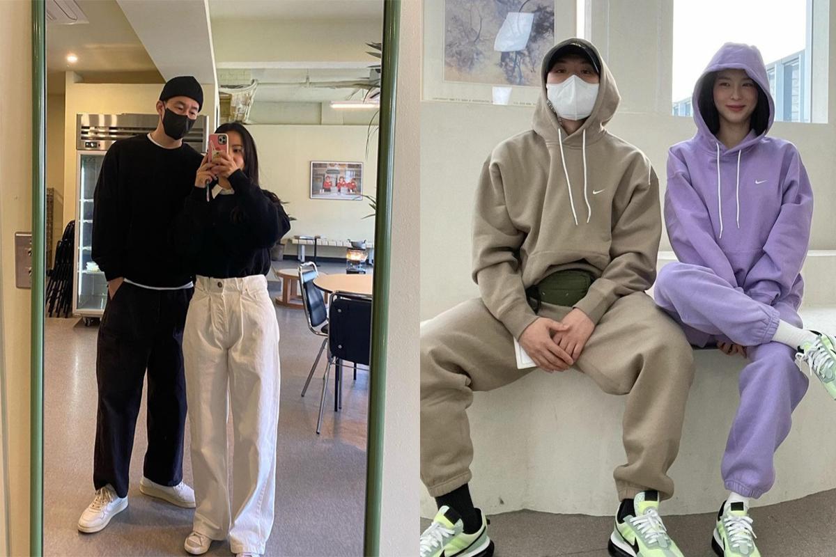 韩国情侣最爱的拍照风格,便是两人穿著情侣装,或是以类似造型合照,可说是历久不衰基本款,而且比起穿著同一件衣服,穿著同色系或同款不同色的搭配,反而更可以看出两人在穿搭上的用心。