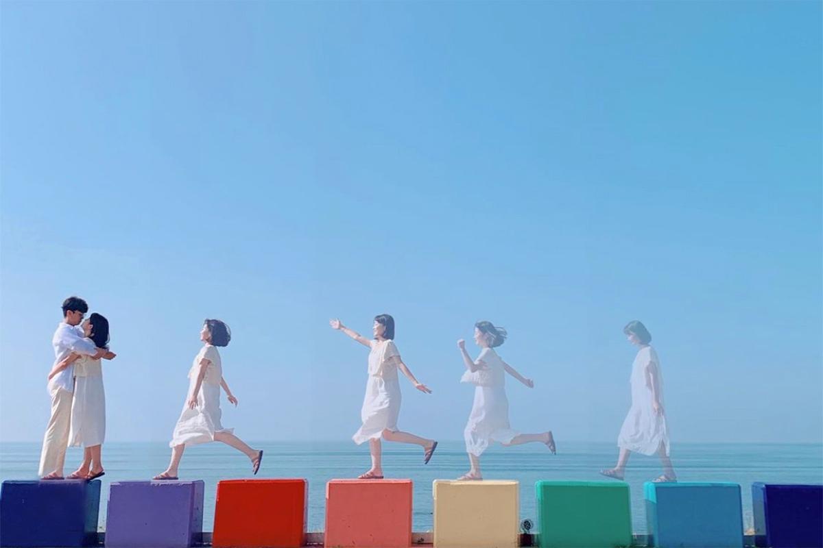 这张照片的组成条件,便是要在空旷地方,架上三脚架来拍摄,并连续拍出数张两人从远到近的合影。人生中,如果可以和另一半留下这样的照片,不觉得很棒吗?