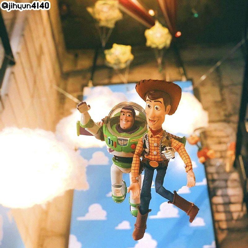 除此之外,这里最大的拍照景点,应该就是屋顶的大型胡迪跟巴斯光年造景了!日落时分的完美晚霞,绝对可以拍出令人满意的照片,加上最近韩国晚霞都呈现粉红色,少女心的大家不要忘了日落时分来访哦~