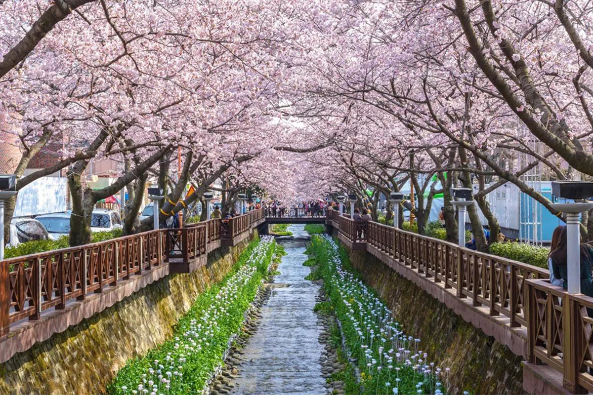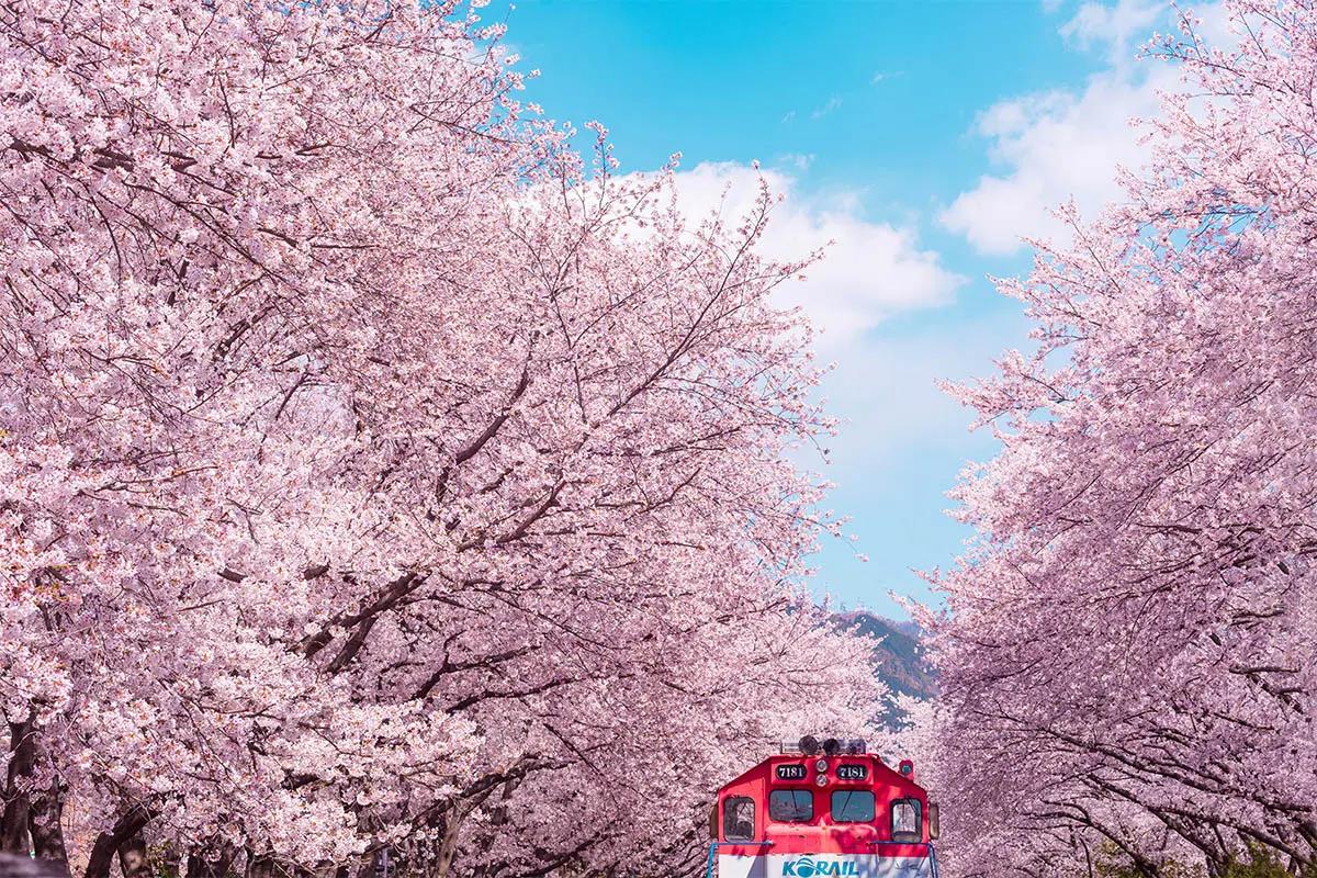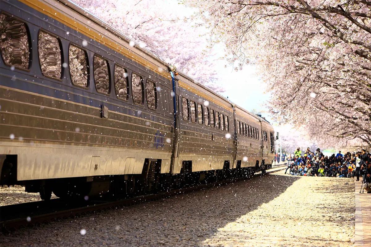 2026年来韩国赏樱吧,在镇海军港节的庆和站,可以在沿途樱花盛开的铁路上漫步,留下如同电影场景一样的照片。行程走访之余,还会来到余左川的「罗曼史之桥」,享受樱花漫天飞舞的情致,现场更有各类咖啡厅、纪念品、街头小吃等多种体验。本行程中午出发,将会欣赏韩国最美丽的夜间樱花,走访余左川时,能在靛蓝夜空中,饱览鲜明的粉白樱花。庆和站樱花路铁道与樱花交织而成的独特氛围,使这里不仅适合悠闲散步,也是深受喜爱的拍照景点;在镇海军港祭期间,更是不可错过的必访名所。[이미지 슬라이더] 余佐川樱花夜景余佐川沿著河道延伸的樱花树与可爱的小桥相互映衬,春天时花瓣洒落水面,营造出浪漫唯美的景色,是镇海军港祭最具代表性的樱花散步路线。[이미지 슬라이더]