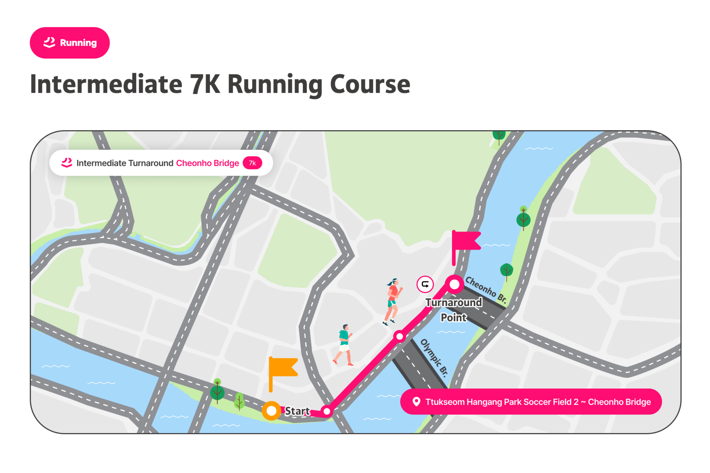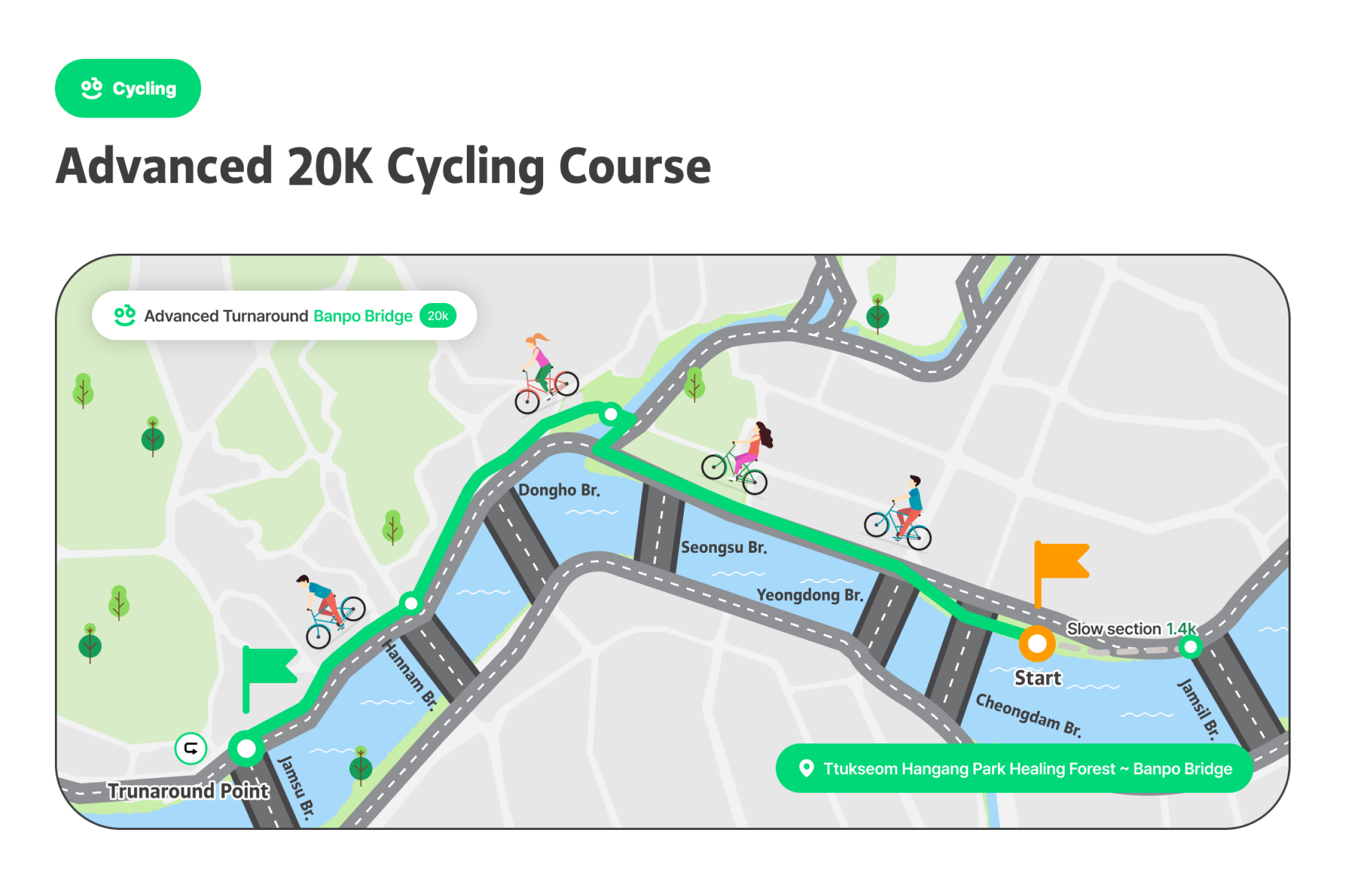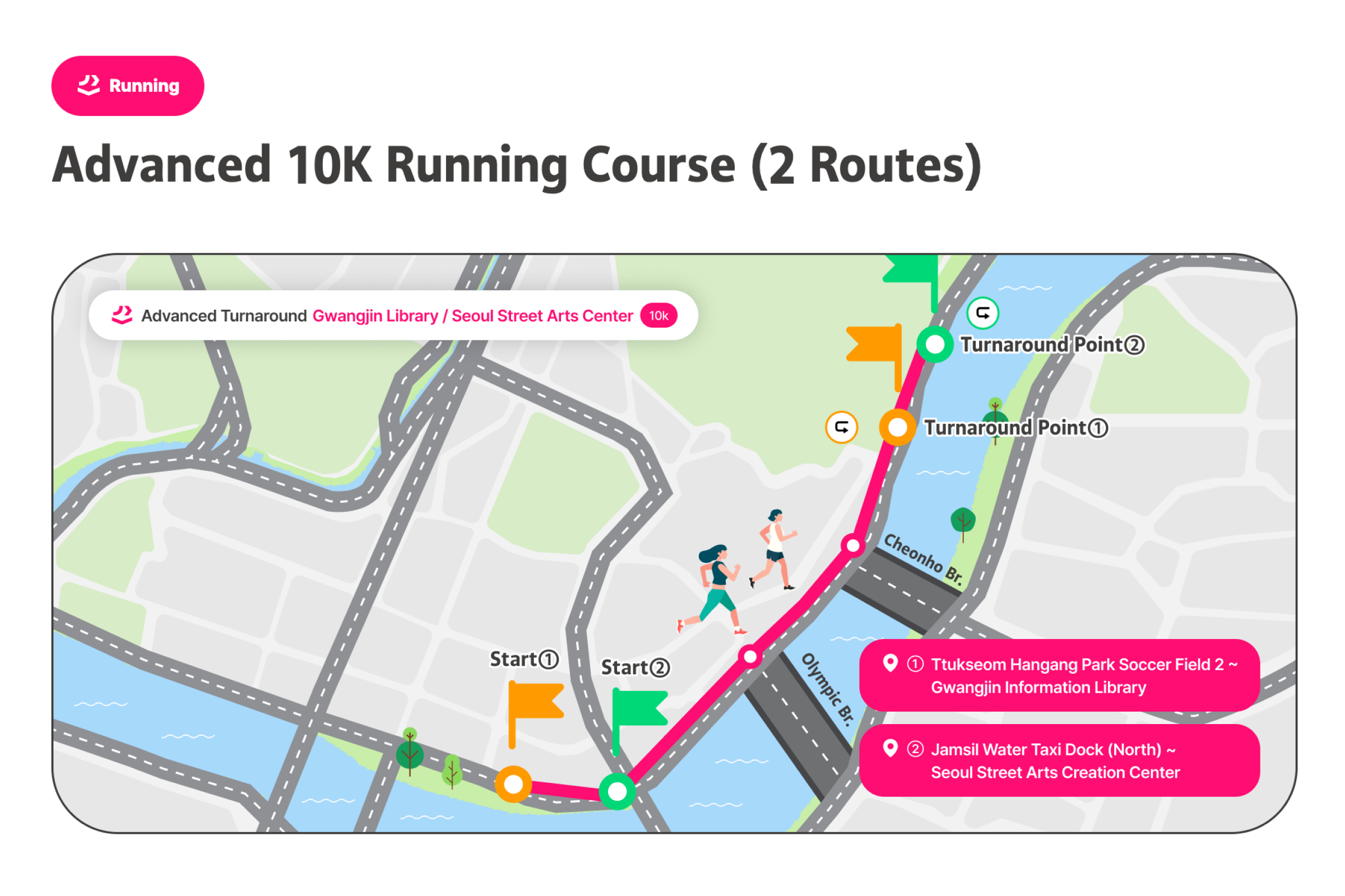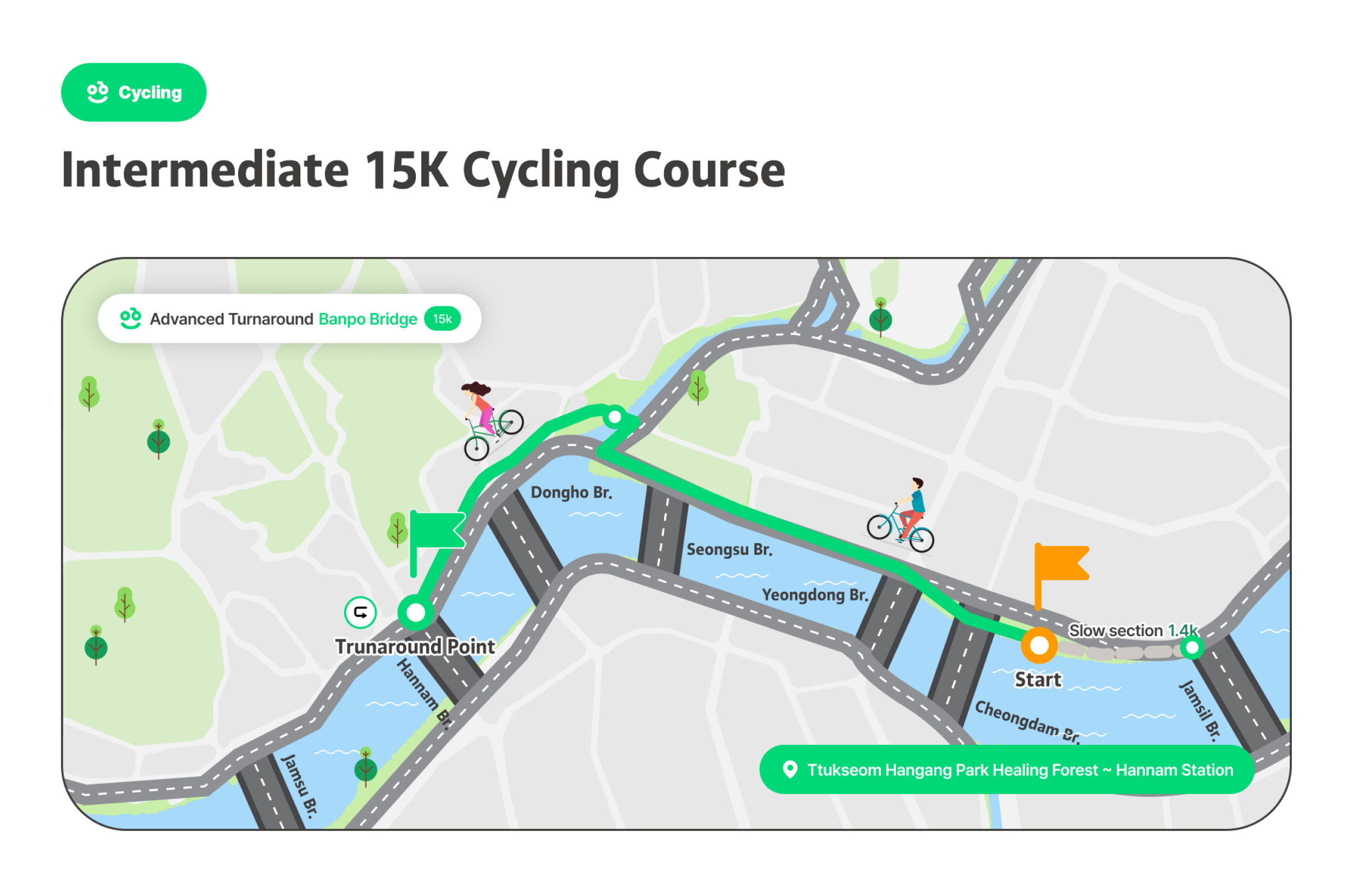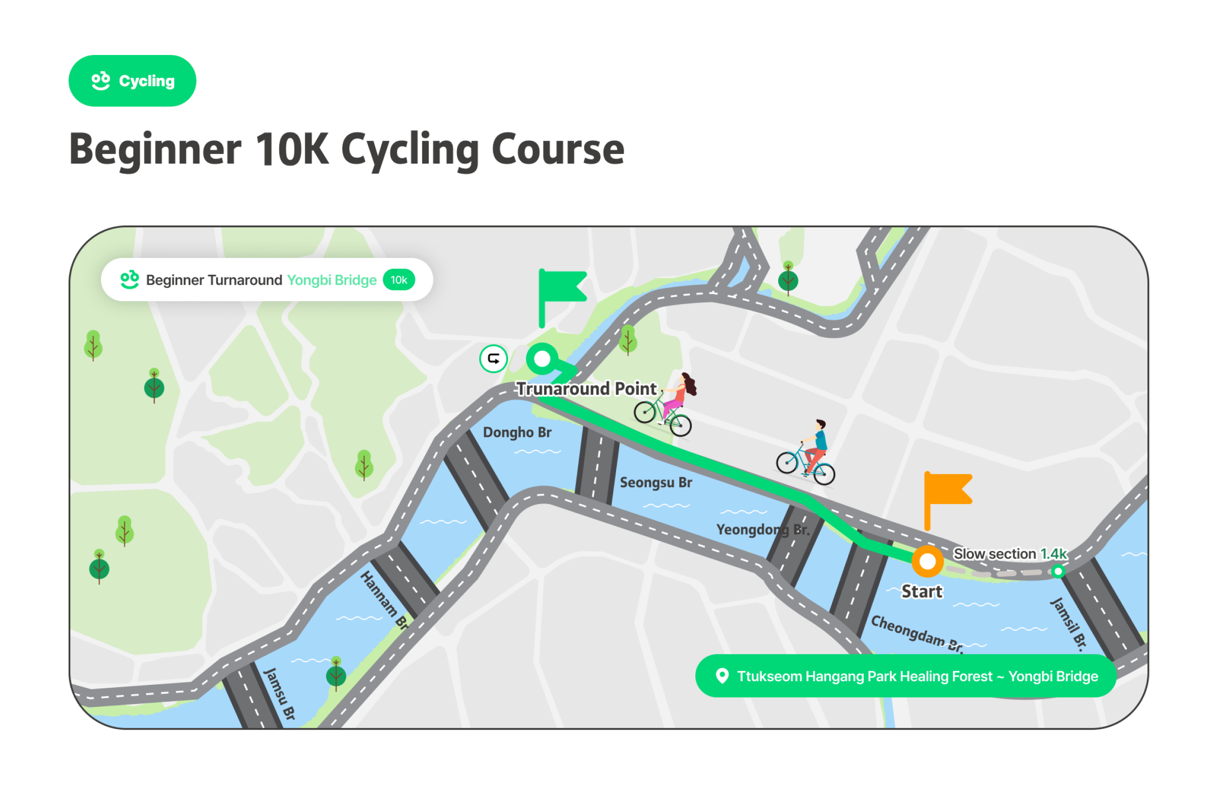 成为世界上最悠闲的三项铁人赛,慢慢享受 的铁人选手吧!汉江三项节是像名字一样,不以名次或纪录、竞争为目的,完成游泳、自行车、跑步的运动节庆。比起运动竞赛更像是庆典,不会计算纪录或排名。以自己的速度与方式、适时休息,和当地人一起完成铁人三项,完成特别的奖牌。有3万名在地人参与、值得信赖的首尔市节庆[图片滑动] 这是由首尔市主办、可信赖且安全的活动。是在汉江体验跑步、自行车和游泳的非常特别的机会。对韩国人已经售罄,只针对外国人限量200张,先到先得。可以一边欣赏美丽的汉江,一边自然地与当地人互动。各种节庆活动同时举办,走走、跑跑、休息一下,一起享受节庆氛围吧。可以获得特别的纪念奖牌,能带来成就感并得到漂亮的纪念品。此外,所有参加者都会收到纪念T恤,留住节庆回忆。穿上T恤在汉江拍张认证照再合适不过了!预先报名时会提供额外赠品,让活动更加丰富。提前报名并拿到特别礼物吧。自由的出发与抵达[图片轮播] 您可在预约的日期时间带内,依照自己的体能状况,任何时候开始。但为了顺利进行,预约时需选择上午(09:00~12:00)或下午(12:00~18:00)时段,请于该时段内到场参加。完成报到后,三项赛目(游泳、骑车、跑步)不必一次完成。活动期间可依个人速度分次完赛并领取奖牌。但游泳开始时间请依指示进行。高阶路线的基本运作方式相同,但因为横越汉江的1km游泳路线,游泳项目的出发与结束时间有固定规定。项目顺序可自由选择。(但为安全考量,建议高阶路线先进行游泳。)活动说明活动名称 : 2026 第3届MY PACE Hangang Triathlon Festival 汉江三项节活动日期 : 2026.06.05(四) ~ 06.07(六)地点初级/中级 : 纛岛汉江公园一带 (首尔特别市广津区 紫阳洞)高级 : 蚕室水上计程车码头南端 (首尔特别市松坡区 蚕室洞1-1)路线说明1. 初级[图片走马灯] (游泳 #1路线)🏊♀️ 游泳: 游泳池200m (뚝섬游泳池)5岁以上(2021年以前出生)可参加身高100cm以上🚲 自行车10km🏃♀️ 跑步5km(游泳 #2路线)🏊♀️ 游泳: 汉江 游泳300m13岁以上(2013年12月31日之前出生)即可参加🚲 单车 10km🏃♀️ 跑步 5km2. 中级[图片滑动器] 🏊♀️ 游泳: 汉江游泳500m可参加年龄为13岁以上(2013年12月31日以前出生)🚲 单车15km🏃♀️ 跑步7km3. 进阶级[图片轮播] 🏊♀️ 游泳: 汉江横渡1km (蚕室水中坝南端~北端)13岁以上(2013年12月31日以前出生)即可参加需穿著全身泳衣(现场可付费租借,20,000韩元)🚲 单车 20km🏃♀️ 跑步 10km参加优惠完成2个以上路线可获得奖牌参加者纪念T恤赠送防晒贴片事前登记者额外好康(能量饮料等)