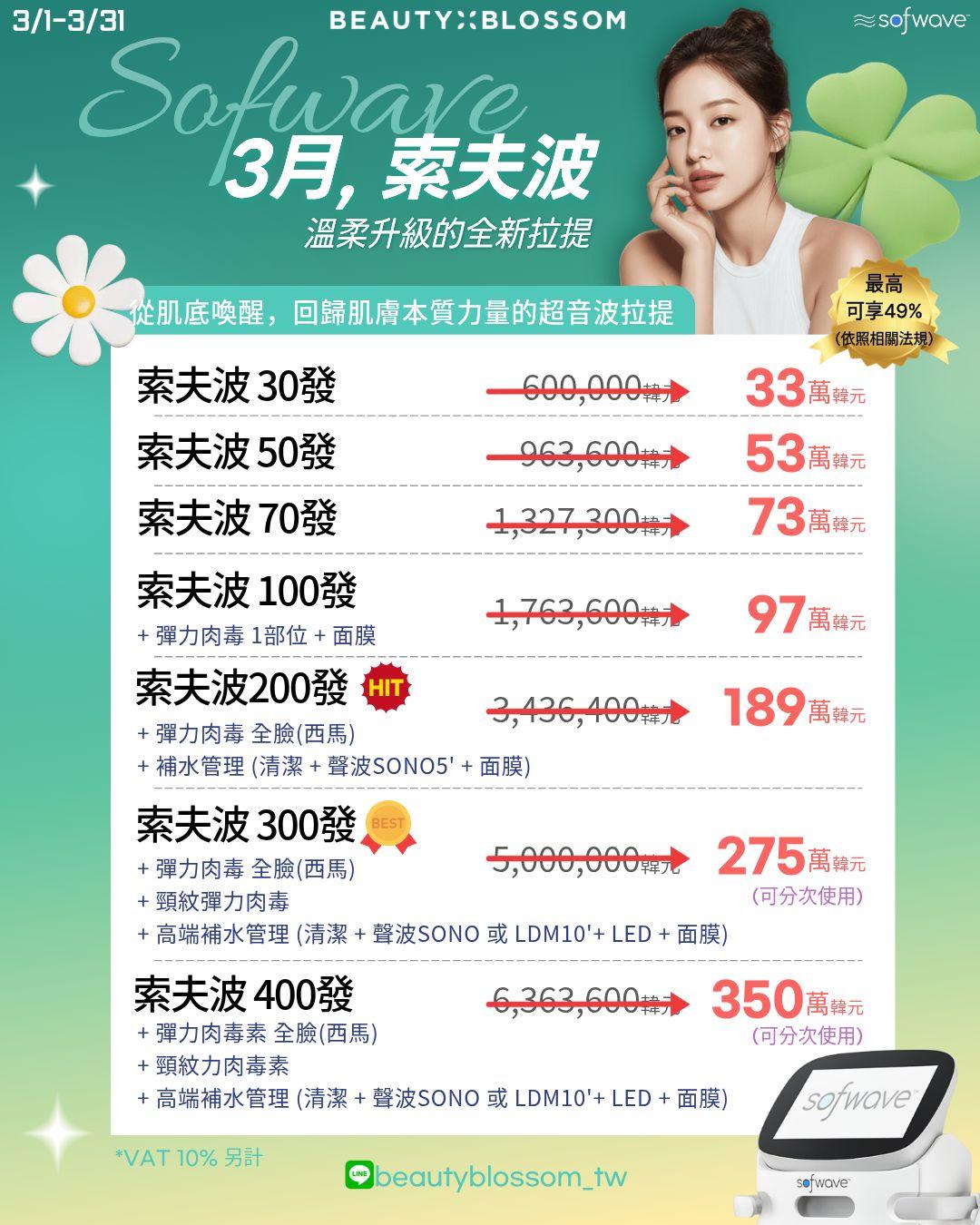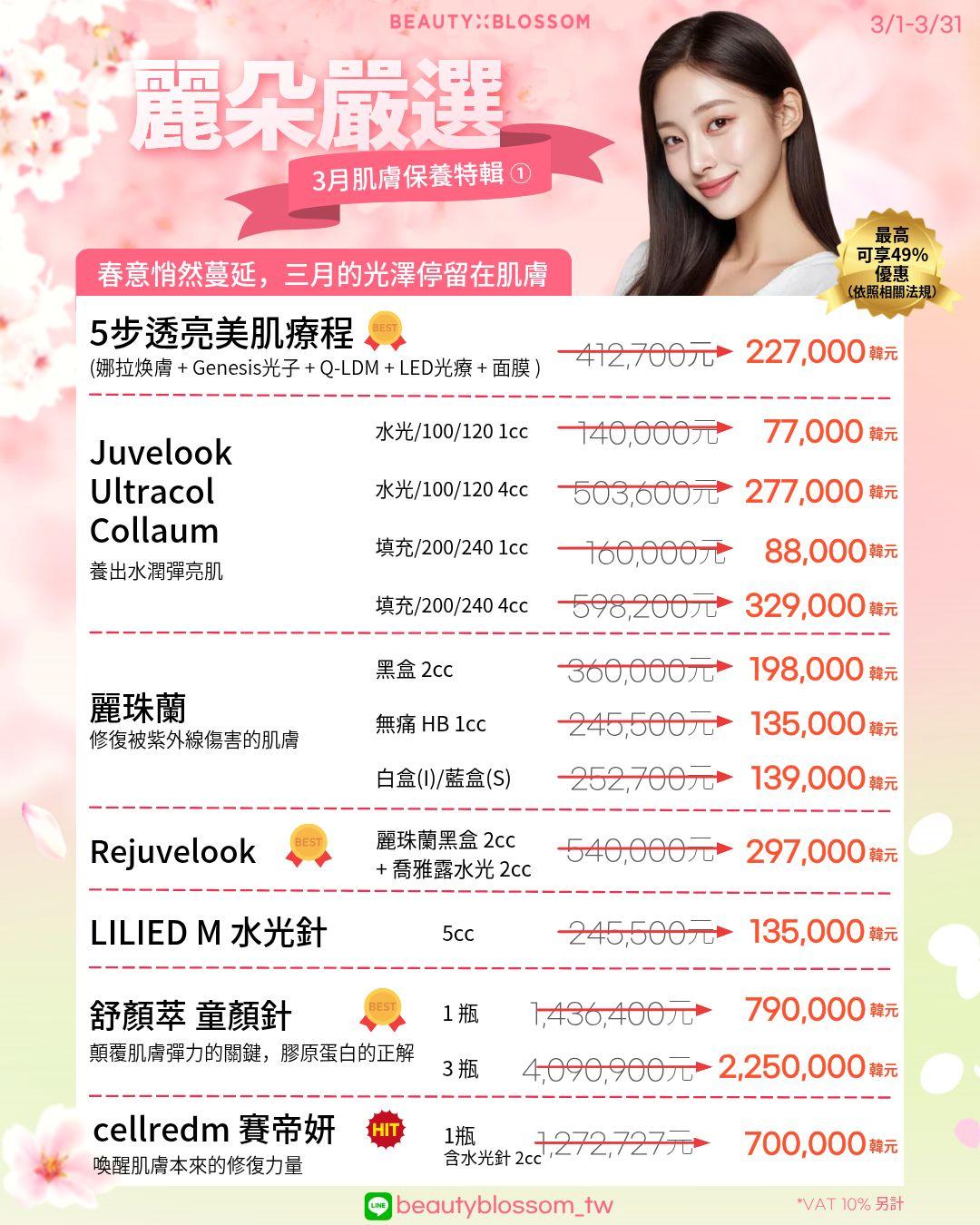 📋Beauty Blossom Clinic 3月优惠疗程