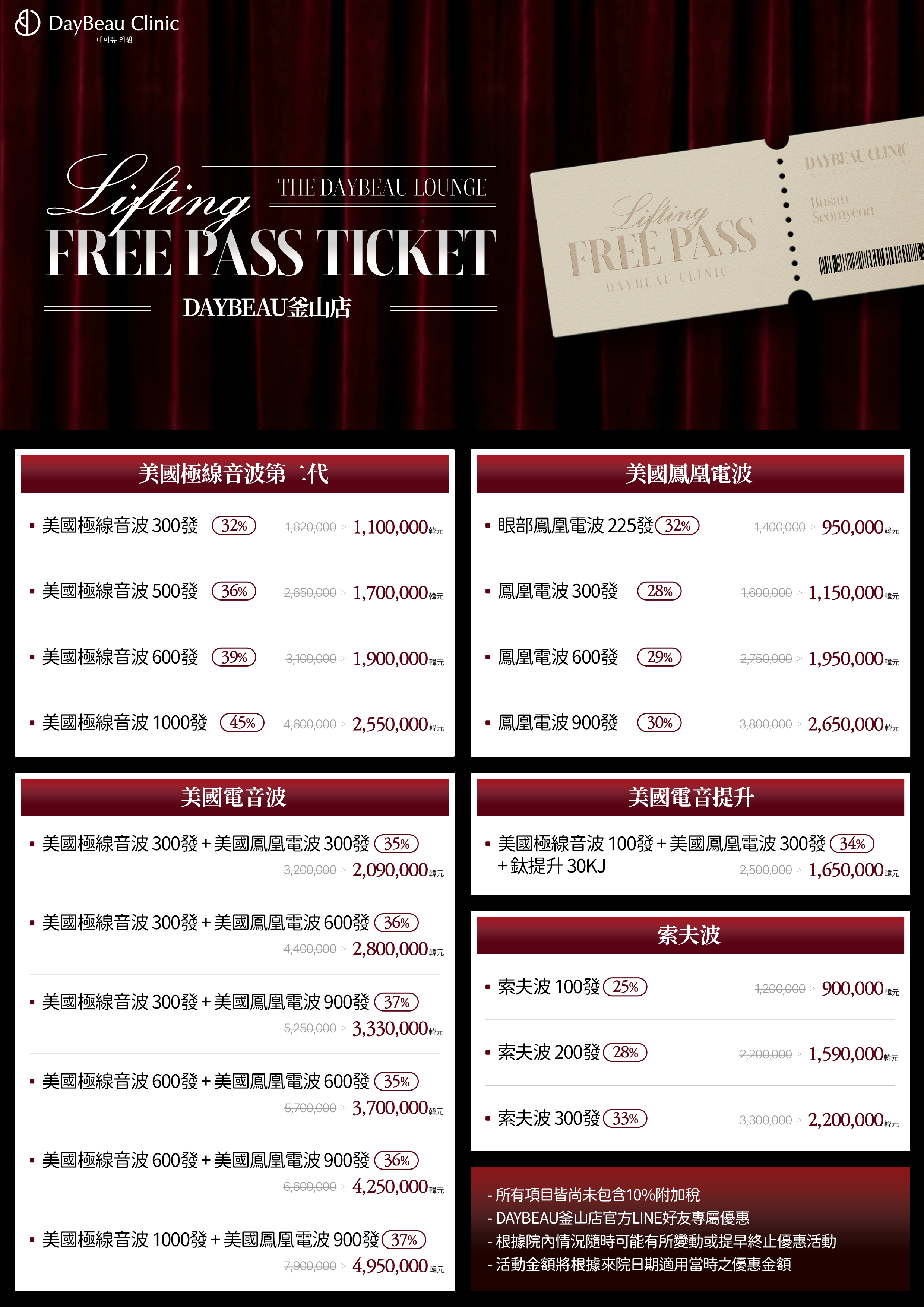 DayBeau釜山西面店仅使用通过全球验证、具FDA核准的原厂设备,例如美版音波2.0、凤凰电波FLX、钛提升等。