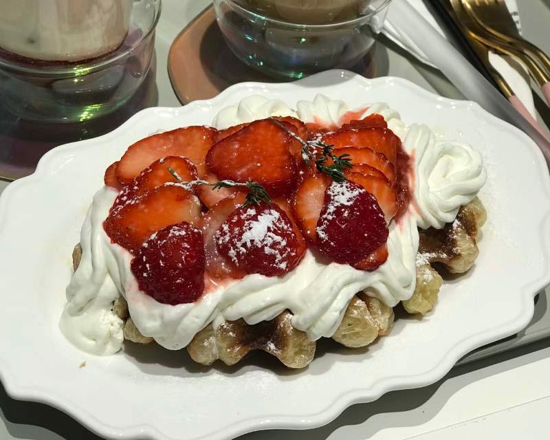 最近喺韓國呢種牛角包鬆餅真係超hit,呢度嘅鬆餅好酥脆,cream唔會太膩,一啖鬆餅一啖士多啤梨同cream一齊食真係好幸福。