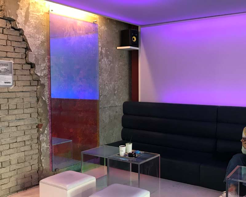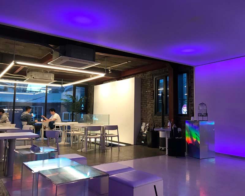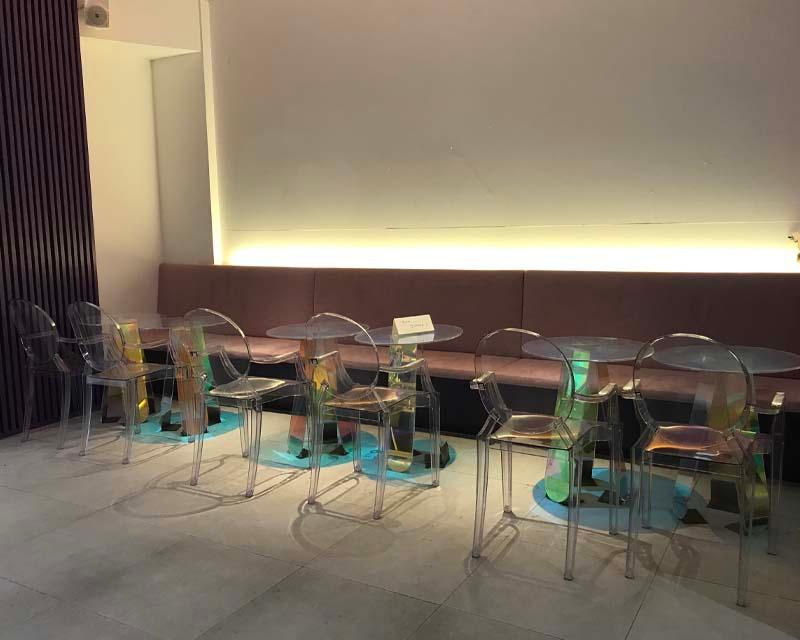 比起坐中間位,小編推薦不以先坐角落位,因為紫色背景同石膏牆嘅配搭令到呢度更有一種藝術風格?