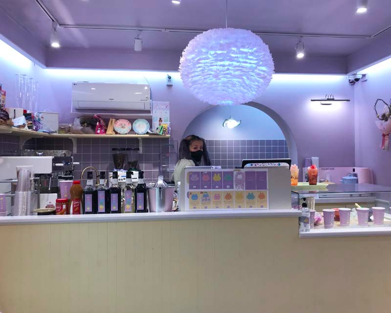 呢度每一個角落都可以成為打卡位,鋪頭店面夠大,一啲都唔會覺得好逼,牆身同櫈都係紫色,令人好放鬆。