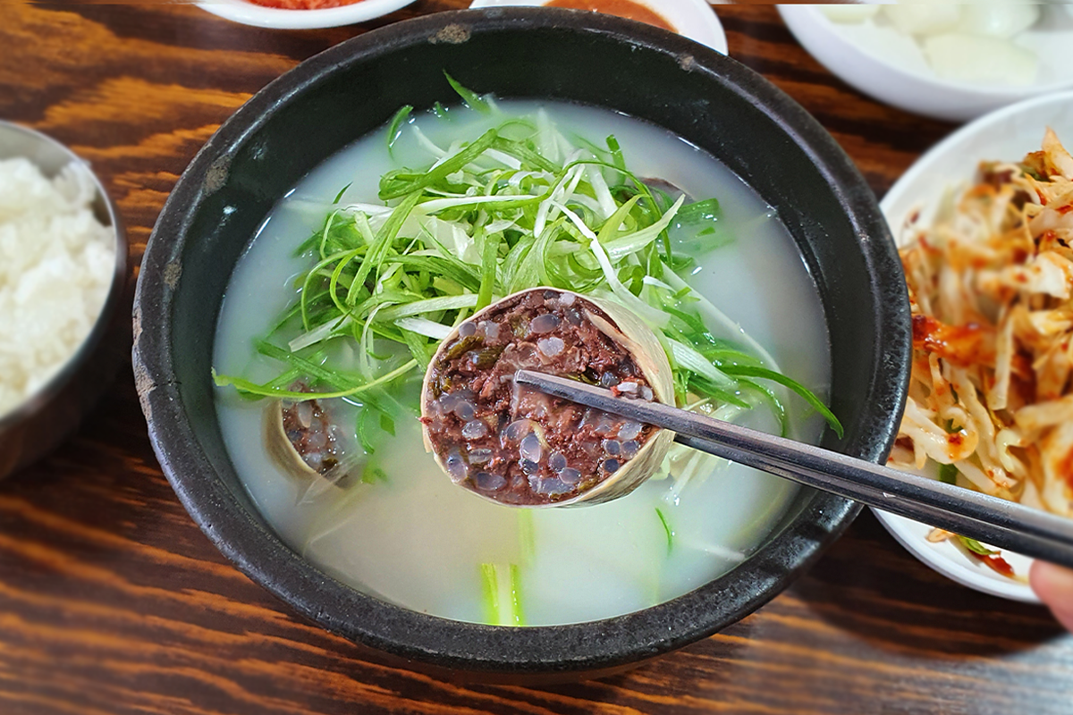 呢間8號食堂係一間擁有40年傳統嘅湯飯美食店,韓國人鍾意嘅豬肉湯飯本來嚟自慶尚道。 8號餐廳雖然都有賣豬肉湯飯,但比起只放豬肉嘅豬肉湯飯,血腸湯飯就更加出名!