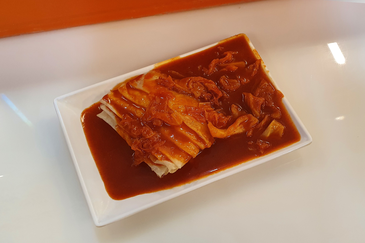 扁餃子係大邱出產嘅扁型餃子,將餃子嘅餡減到最少,將餃子皮壓薄後用油煎出,可以話係大邱小食店嘅必有嘅出名菜式。 呢度嘅扁餃子仲會鋪滿炒年糕醬汁添!