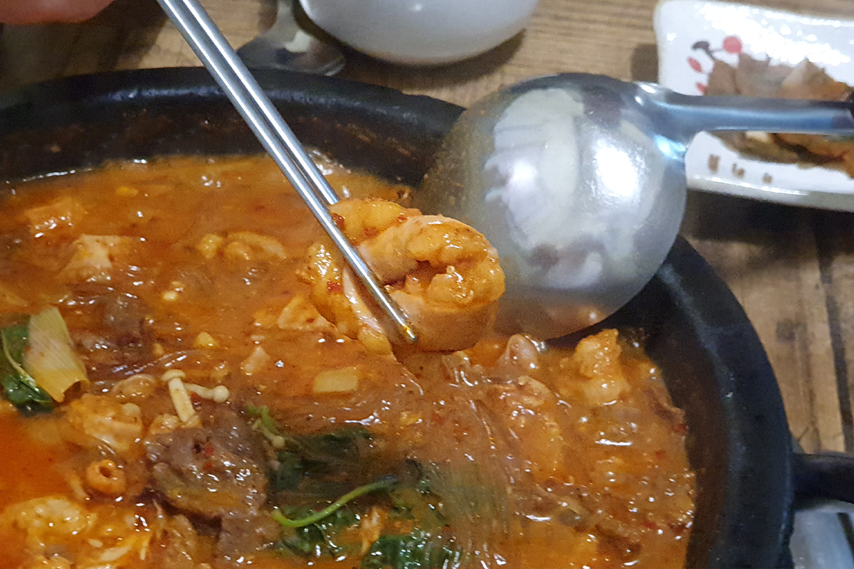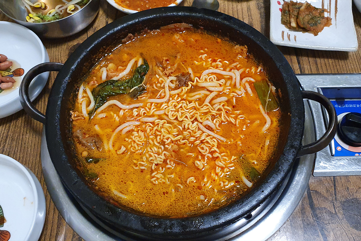 呢度嘅menu大致分為火鍋(전골)同調味烤腸(양념 구이),但係呢度出名食火鍋,所以小編都叫咗呢度嘅招牌火鍋。 加上呢度所有嘅菜式都係至少叫兩人份,所以小編都叫咗兩人份。