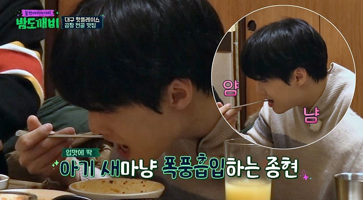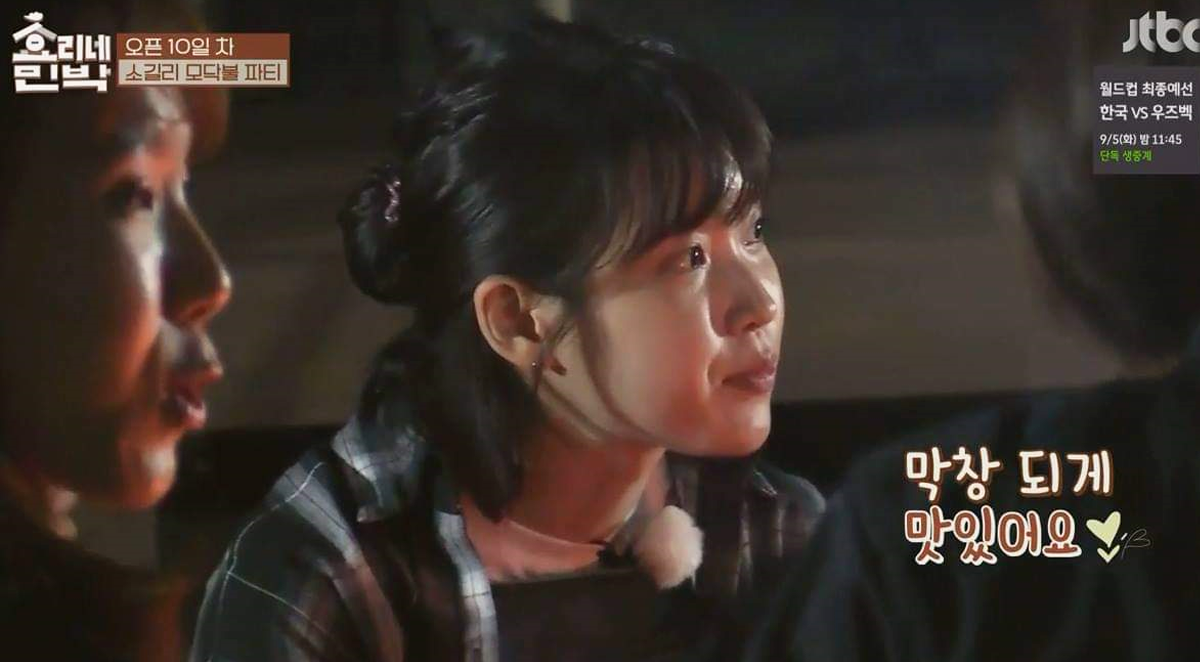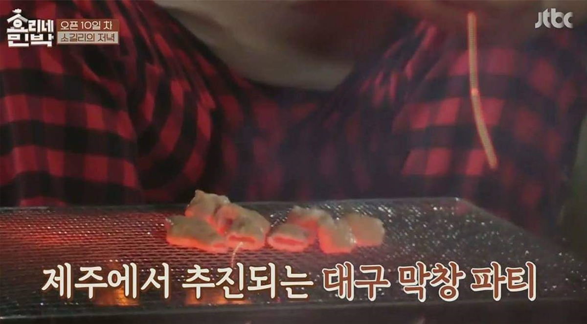 去「孝利去民宿」嘅遊客入面,有5個係嚟自大邱嘅同事。佢哋喺「第一炭火烤肚」外賣新鮮嘅烤腸,帶去濟州島同民宿嘅人一齊分享。 IU食得津津有味,引起話題。 小編都過去呢間IU都鍾意嘅烤腸店!