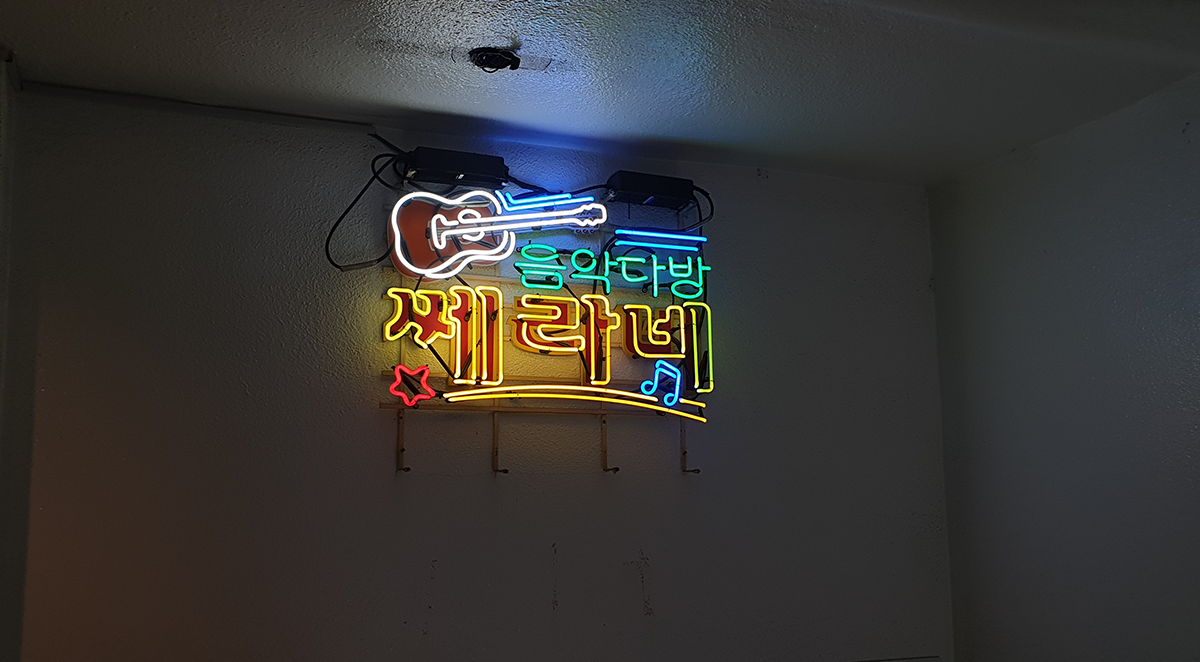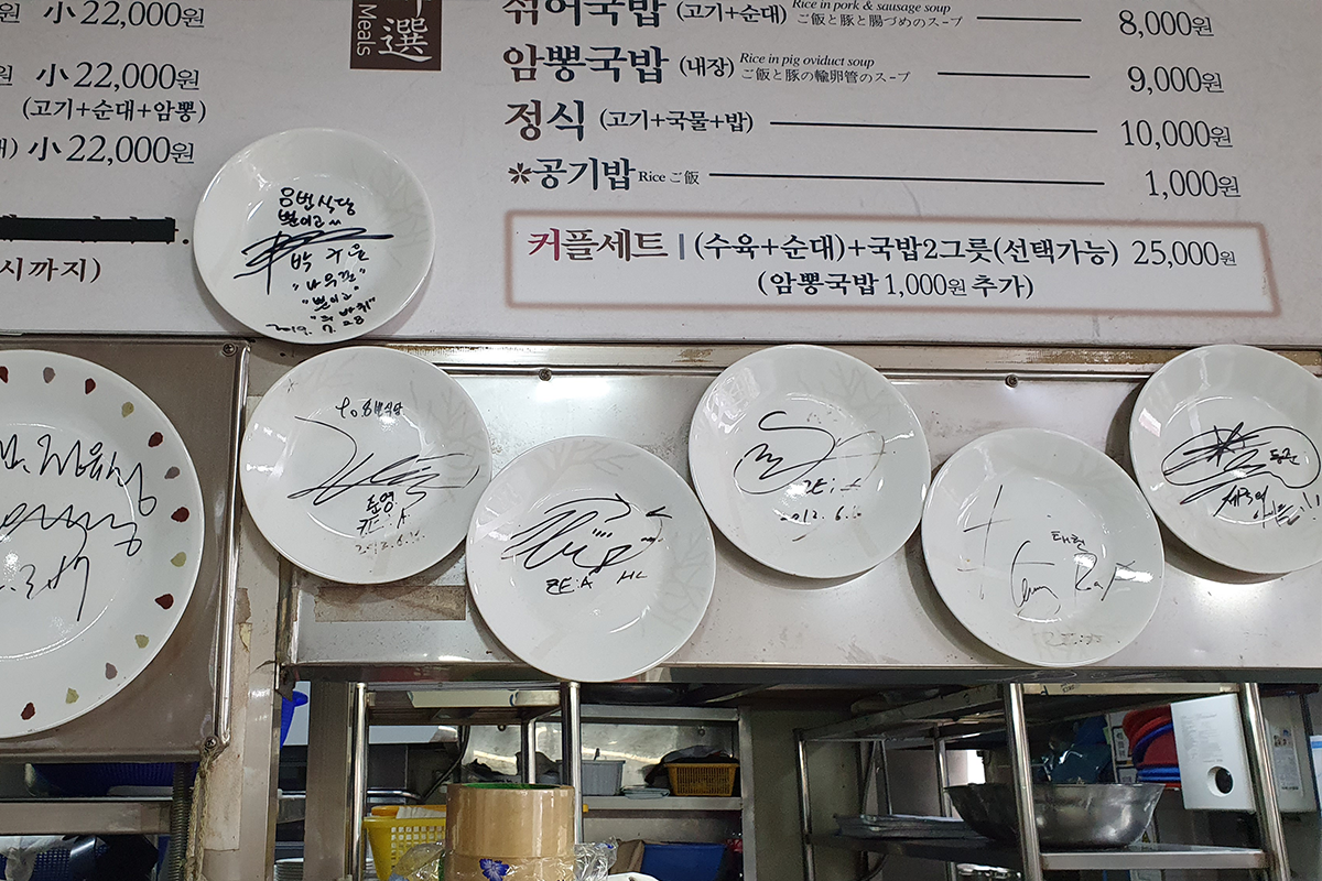 入口處掛咗嚟過嘅藝人簽名。 特別嘅係,唔係簽喺紙度,而係簽喺碟度! 有大邱出身嘅名人、ZE:A嘅成員,仲掛咗同PSY嘅合照添!