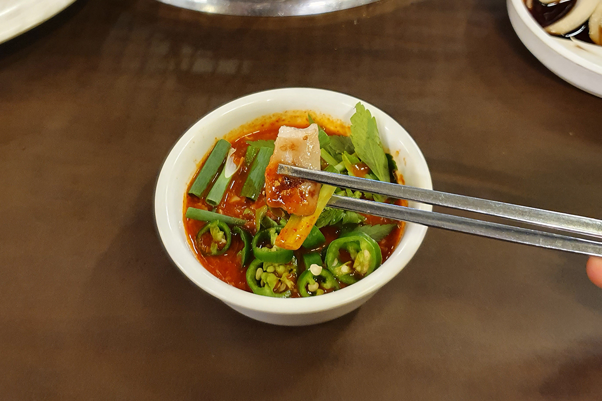 而呢度最特別嘅係點烤腸食嘅調味醬,個醬係用韓國傳統大醬製成,但比大醬稀啲、甜啲。