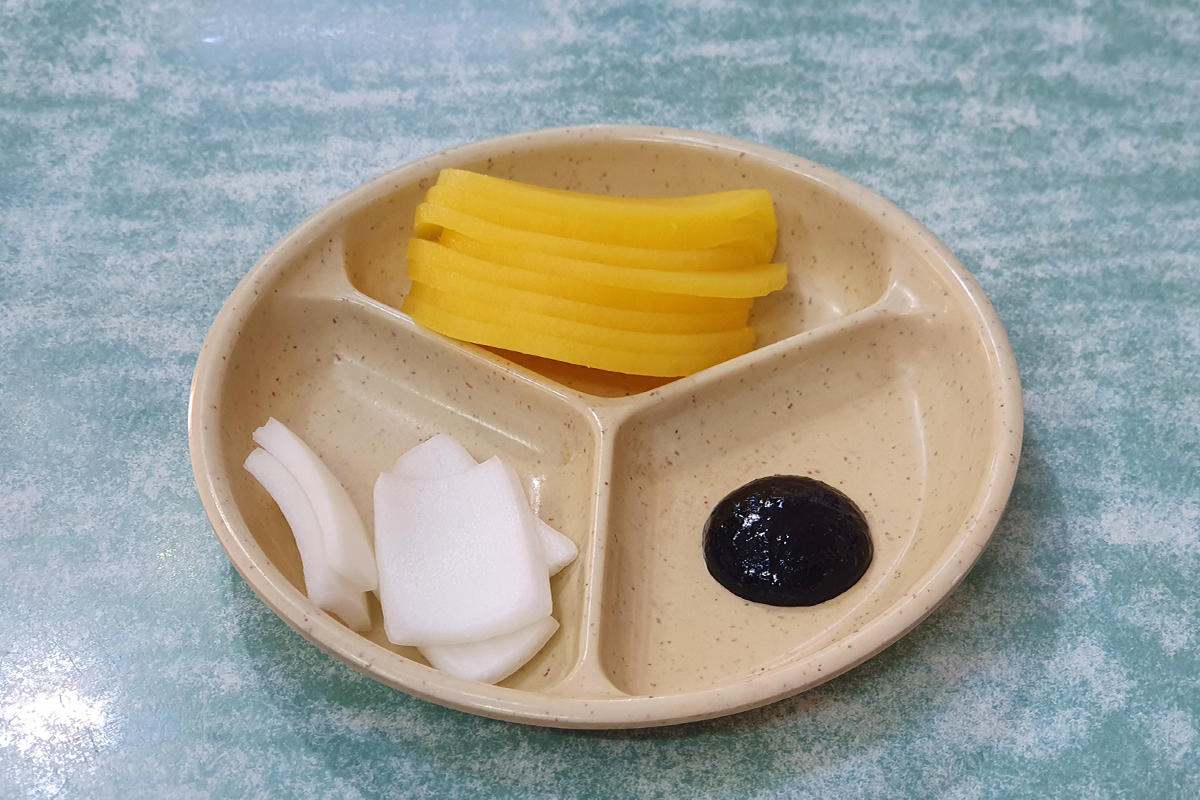 小菜非常之簡單,係韓式嘅中華料理店最基本嘅小菜,有醃蘿蔔、生洋蔥同春醬。