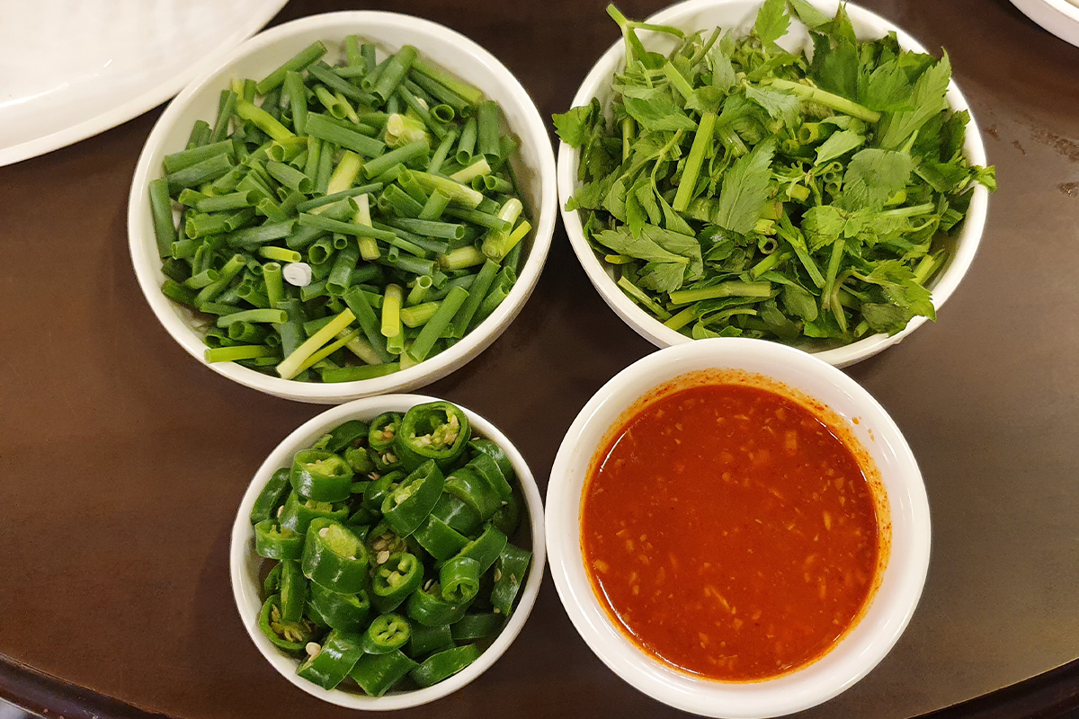 連埋啲蔥、水芹菜、辣椒撈埋一齊食,更加完美!