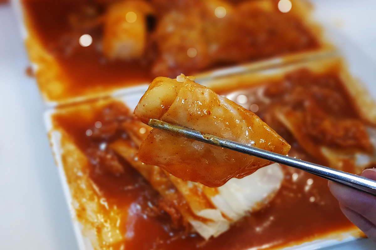 小編唔係咁食得辣,所以有啲擔心,但係呢度嘅辣炒年糕醬一啲都唔辣,就好似白種元講嘅一樣,醬料入面加咗咖喱粉,食到好香嘅咖喱味,連埋椰菜一齊食,甜中帶少少辣,好過癮!