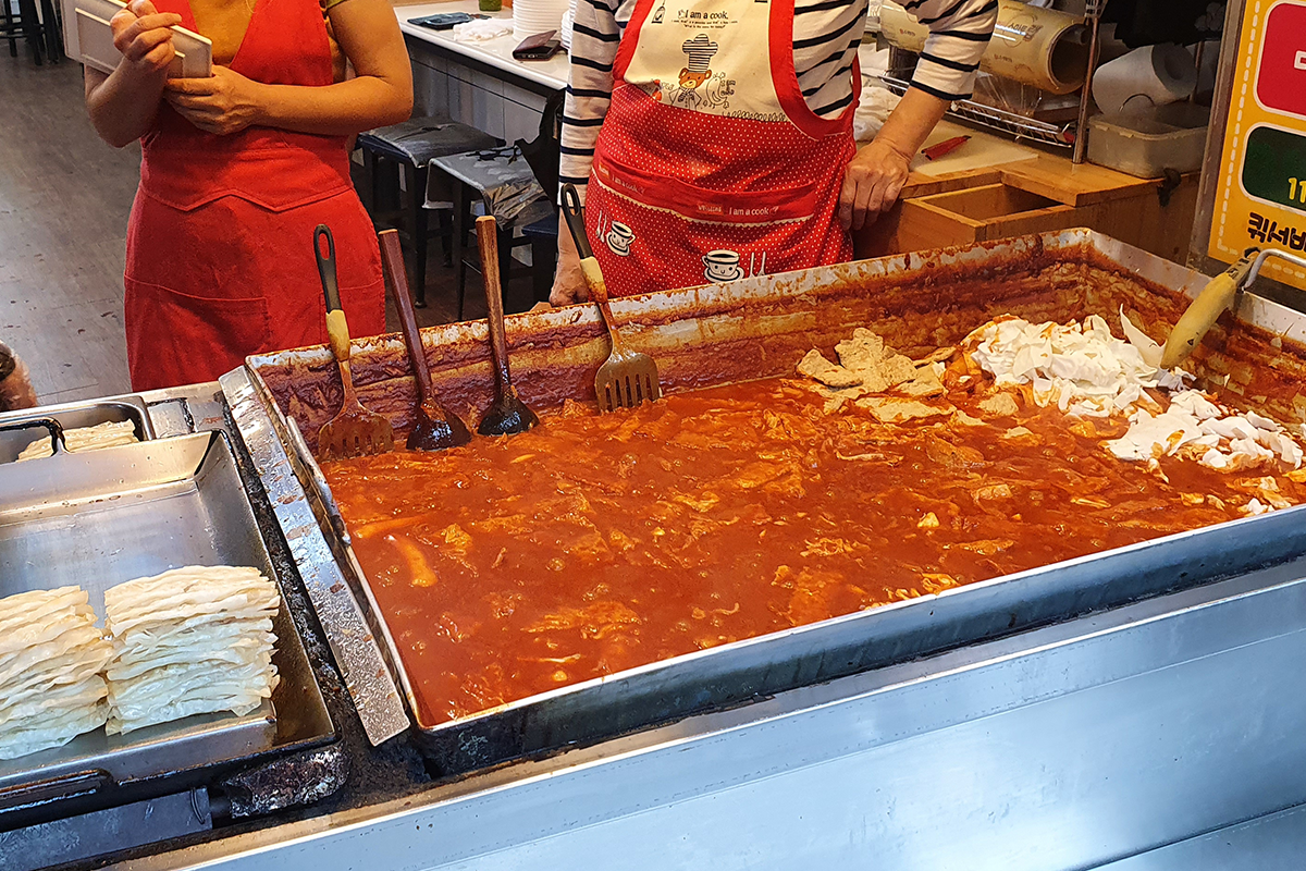 舖頭入口嗰度就可以見到職員喺一個超大嘅鐵板上炒年糕。呢個炒年糕嘅方式都係韓國傳統嘅小食店風格!
