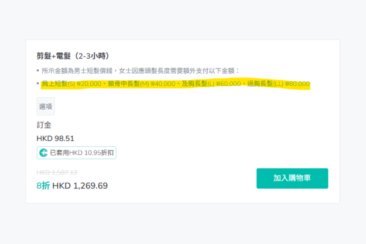 如果大家係透過Creatrip預約韓國髮型屋嘅話,可以見到預約頁面上面都有列明額外費用,價錢夠透明,大家可以放心去體驗,唔需要擔心因為係外國人而被收貴。