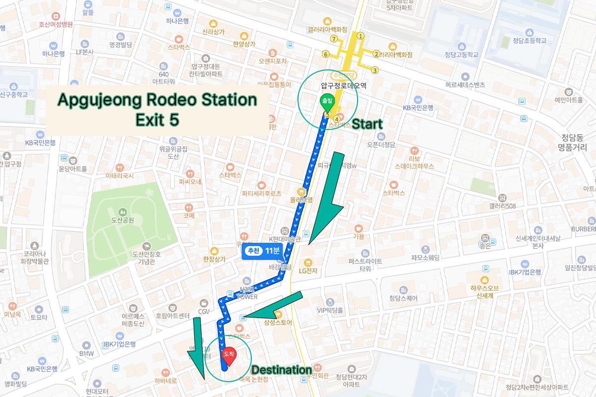 - Apgujeong Rodeo Station Exit 5