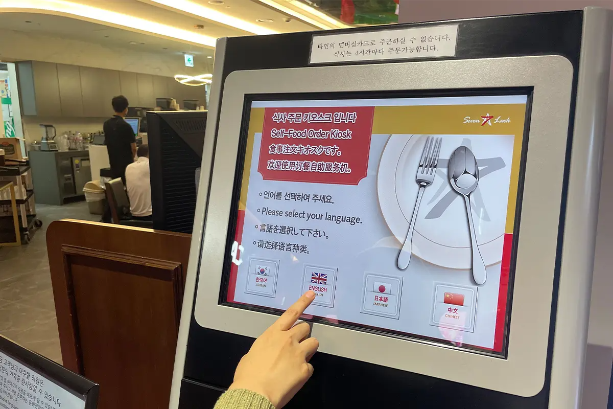 如果你再玩桌上遊戲10分鐘以上,就可以免費用餐,你可以先去餐廳前的亭子選擇語言,然後刷會員卡,就可以選擇菜單。