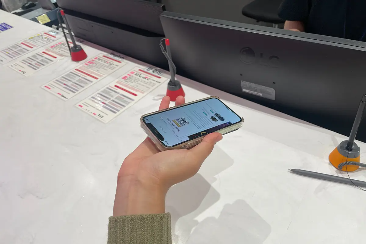 請從入口進入,然後在櫃檯出示護照和優惠券。
