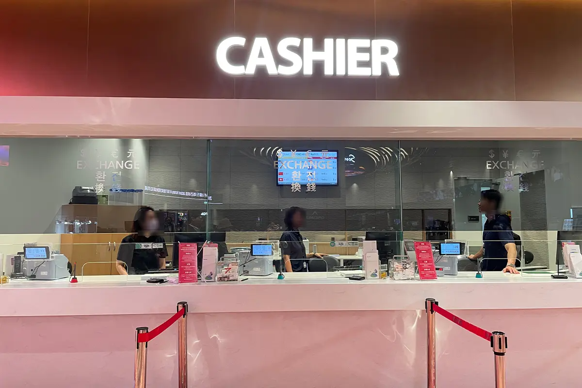 會員營銷櫃檯就喺前面有個收銀員,喺度交咗現金籌碼,佢會幫你換成現金。