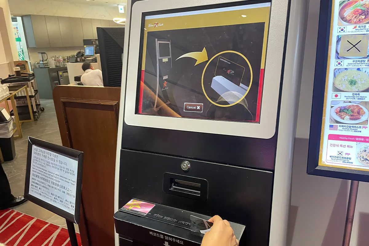 而喺佢隔籬就有部機器可以檢查會員積分,如果你喺呢部機器度刷卡,就會顯示你嘅積分同可以使用嘅服務。