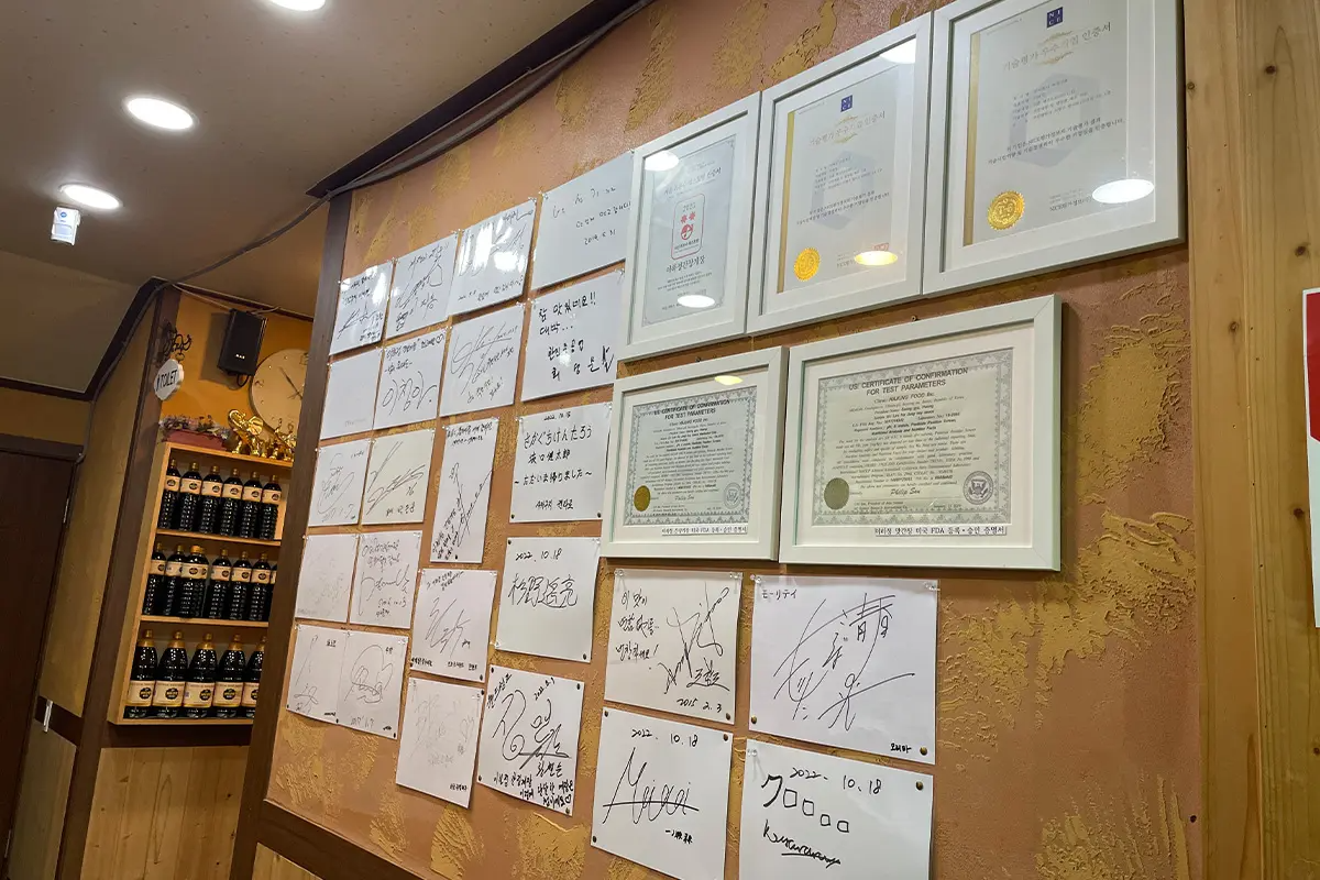 一入到去就會見到牆上掛滿好多證書同藝人簽名!
