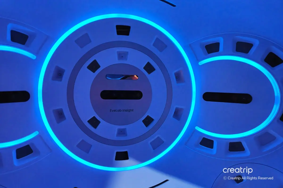 正式進行療程之前會先用一部叫EVE V 3D嘅機器進行皮膚診斷,只要將頭放喺支架上面,眯埋眼之後1分鐘內就會幫你喺多角度進行3D拍攝。