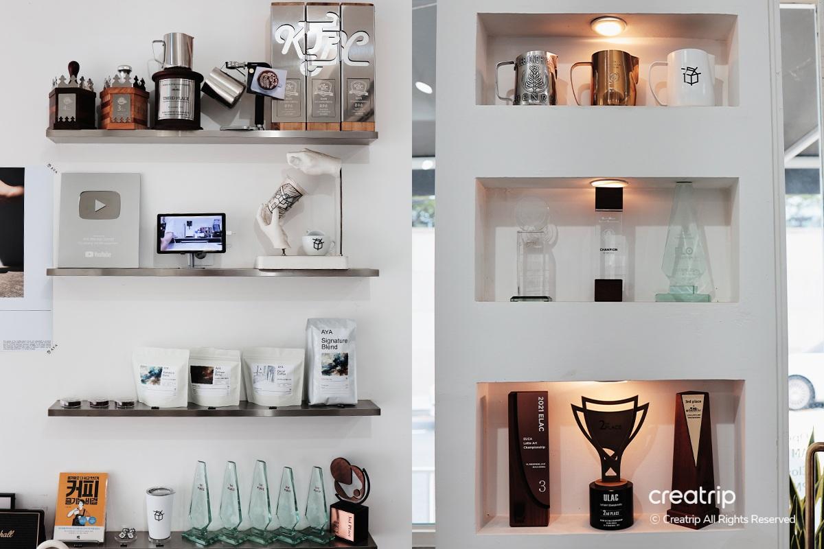 Cafe裝修以白色為主調,大家仲會發現到牆上有一個Silver Button,原來老闆係一個有超過19萬訂閲嘅YouTuber!除此之外,呢度嘅咖啡師曾經喺國際咖啡師大會獲得唔少獎項,實力有目共睹!